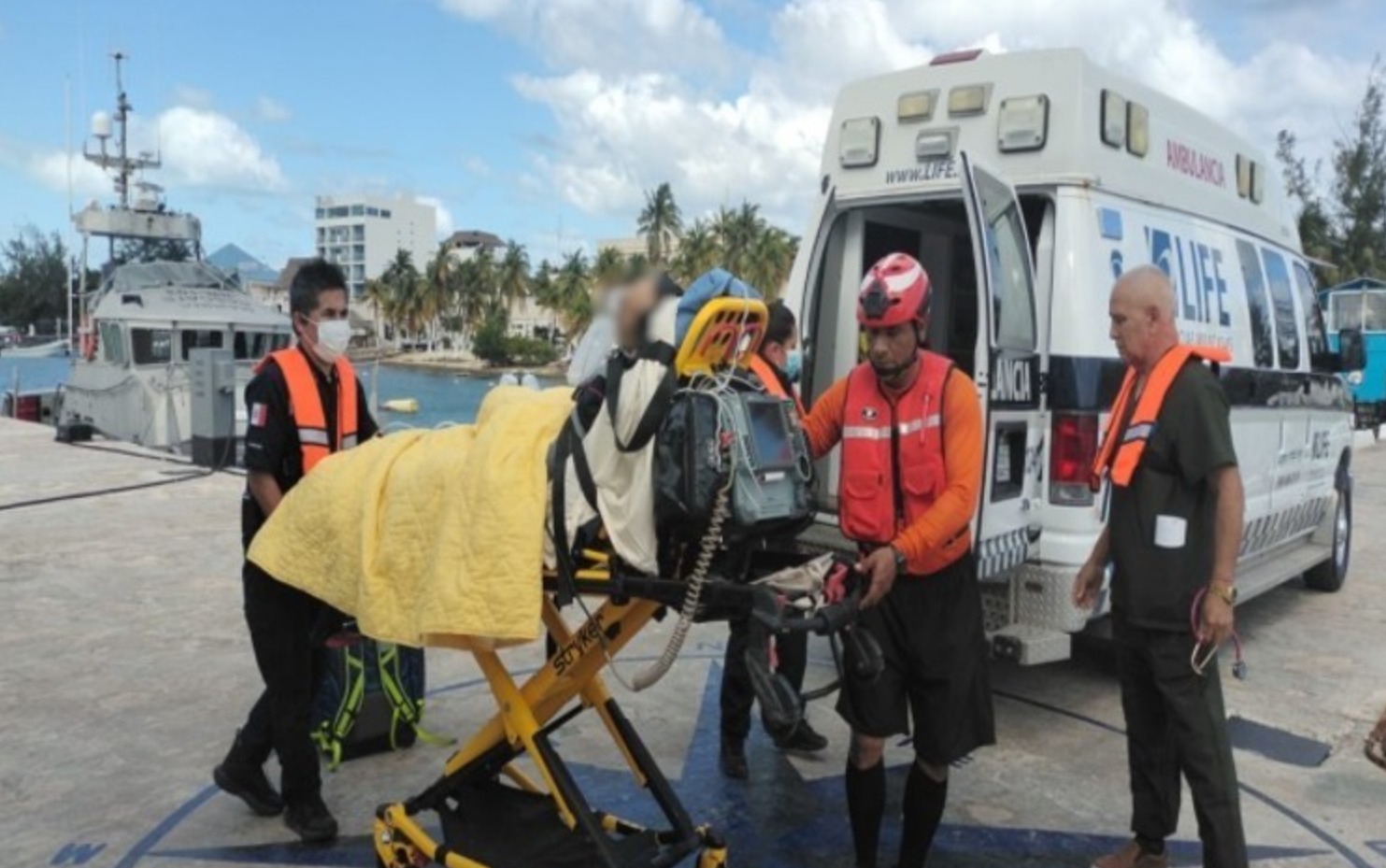 Por lo anterior, personal perteneciente a la Estación de Búsqueda, Rescate y Vigilancia Marítima (ENSAR) Mujeres zarpó de inmediato en una embarcación tipo Defender, para realizar el traslado del paciente a Puerto Juárez, donde fue recibido por una ambulancia particular y ser transportado a un hospital de la localidad con el fin de continuar con su atención médica especializada.