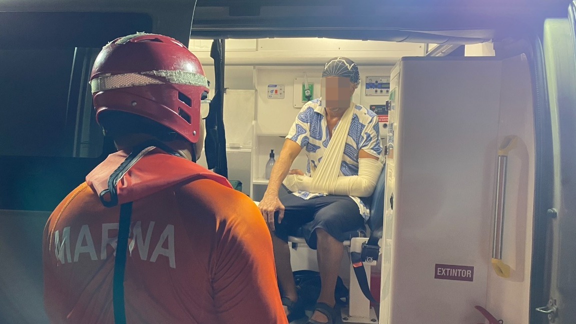 De esta manera y con el objetivo de salvaguardar la vida humana en la mar, se ordenó el zarpe de una embarcación tipo Defender con personal especializado a bordo para atender la emergencia. Al arribar al área señalada, personal de sanidad naval procedió a brindar apoyo médico inicial a la persona lesionada, por presentar fractura radio cubital en el brazo izquierdo y