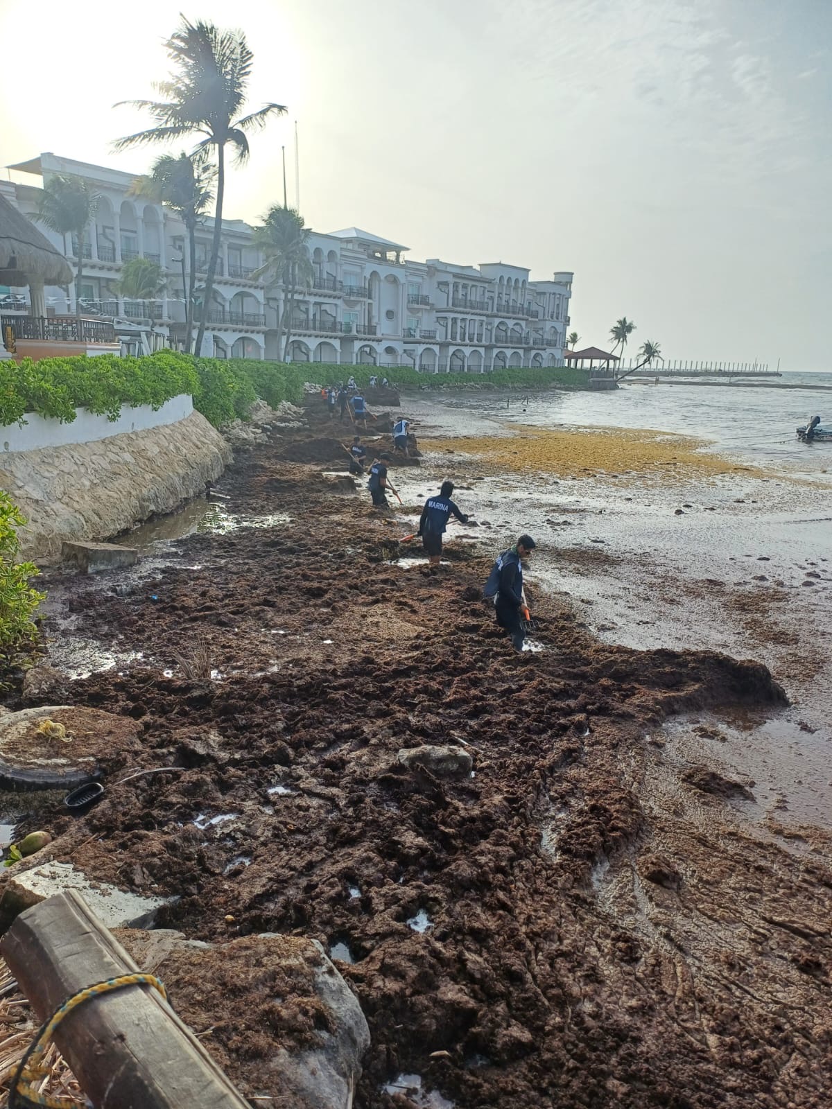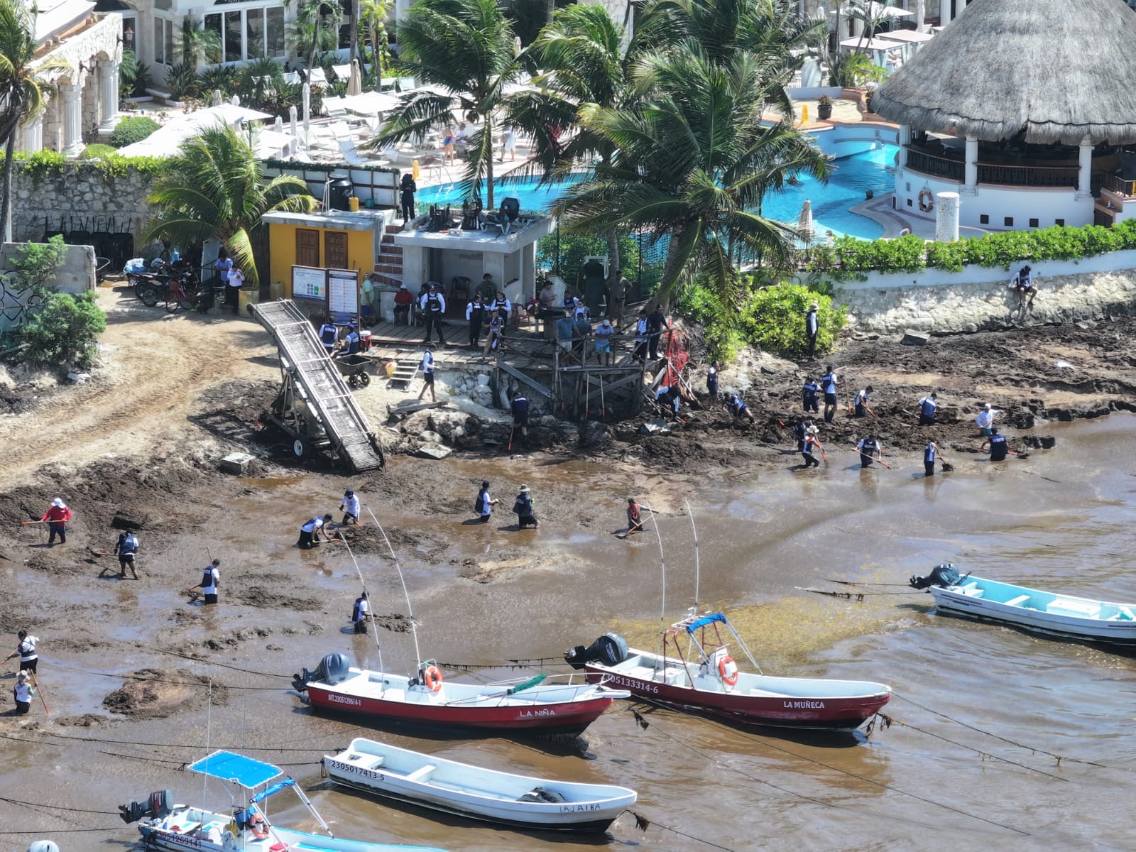 Durante mayo y junio, se ha observado un arribo atípico y excesivo de sargazo, por lo cual se han intensificado las acciones de los tres órdenes de gobierno, así como de diversos sectores económicos. En playas de difícil acceso, se ha implementado una dinámica de retorno del sargazo al mar, aprovechando el oleaje y las corrientes para su posterior recolección en puntos accesibles.