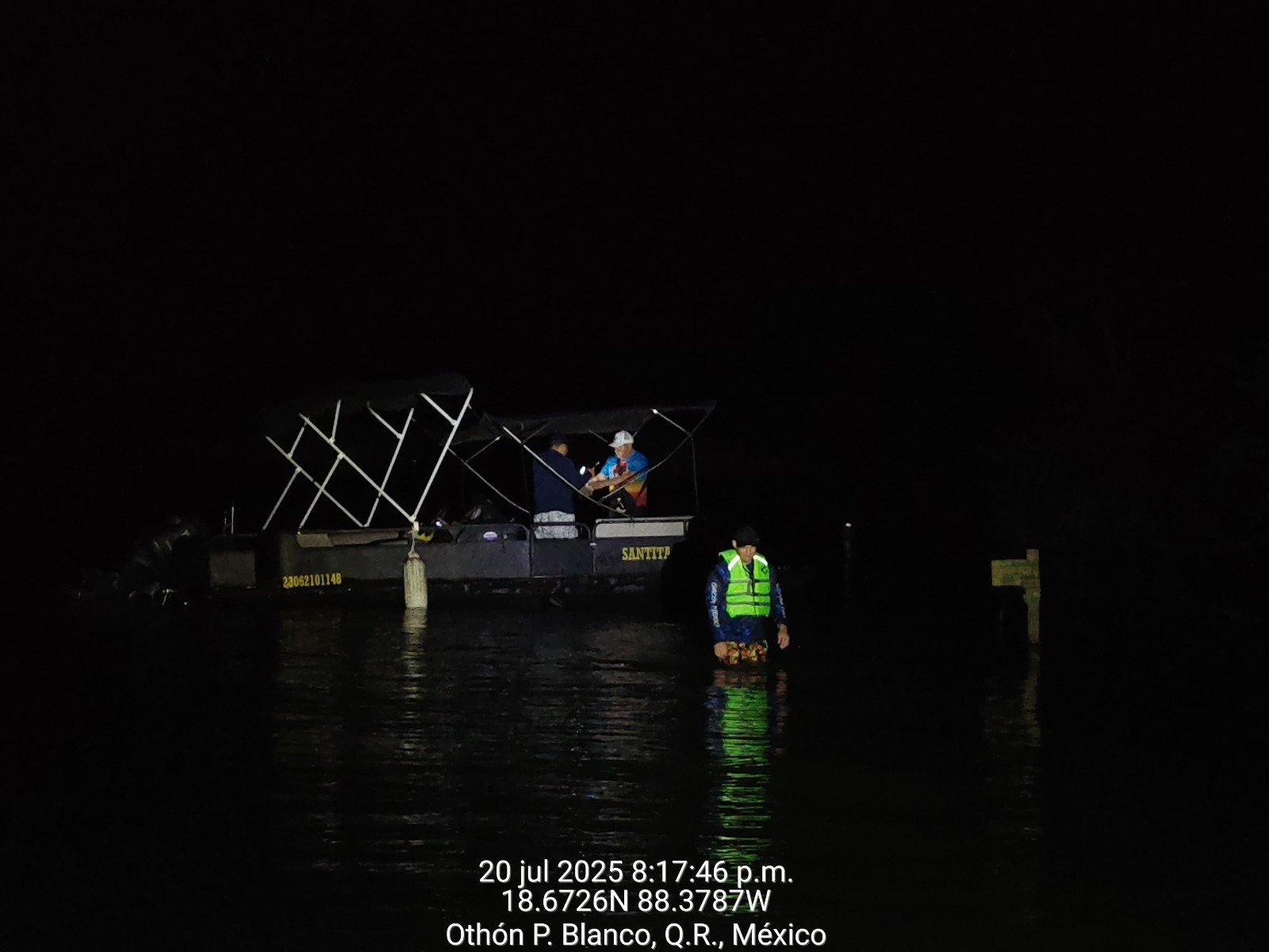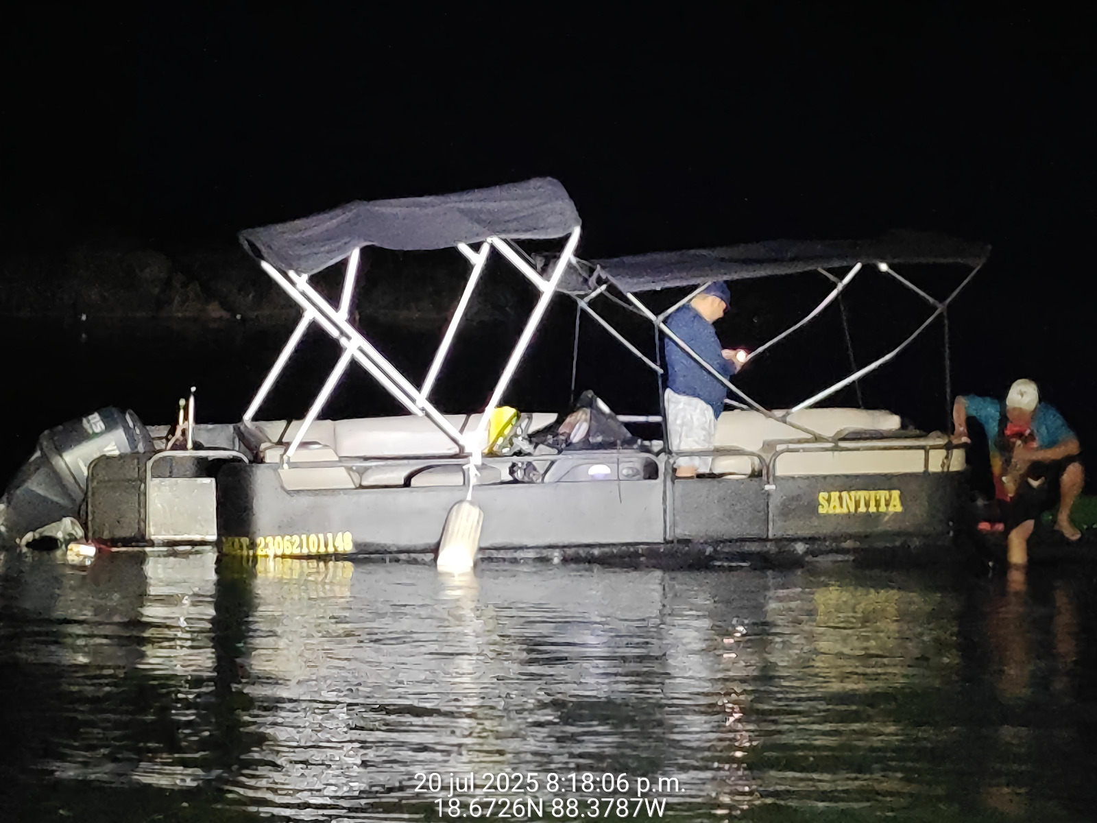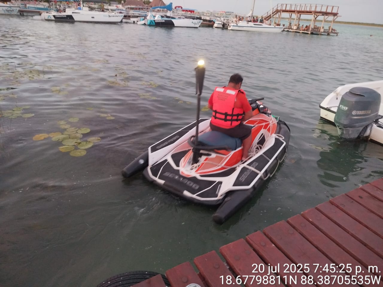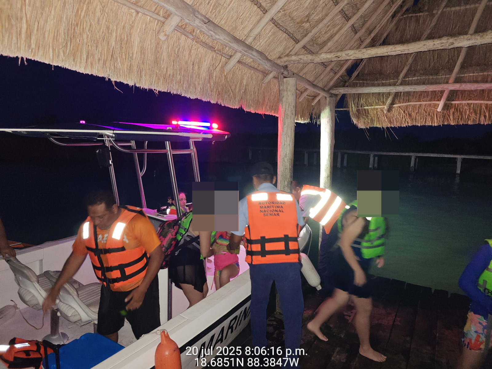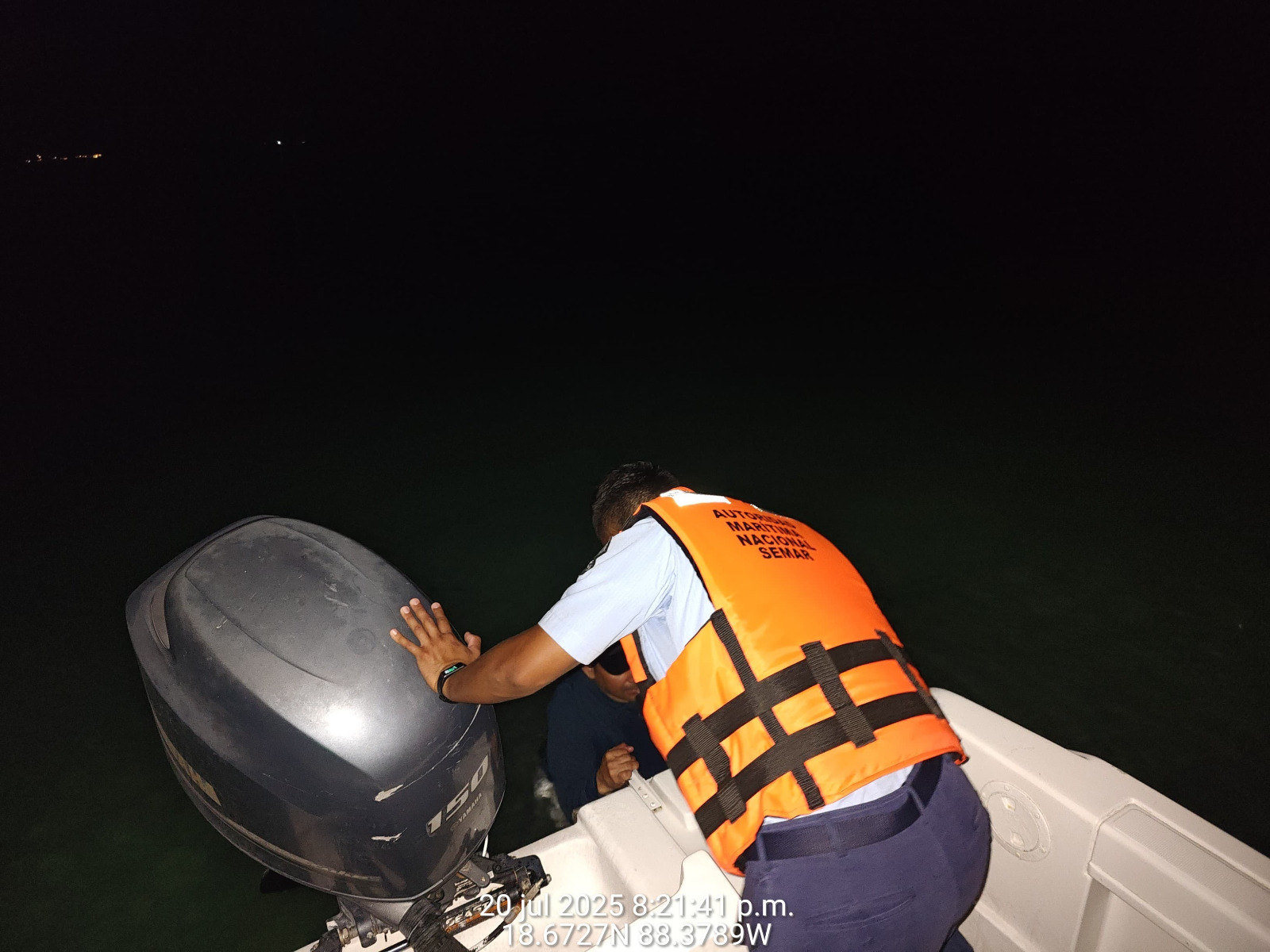 Por lo anterior, se activó el Sistema de Búsqueda y Rescate de la Armada de México, donde se desplegó una embarcación menor y una moto acuática con personal de rescate para la salvaguarda de la vida humana en la mar. Al arribar al área de rescate se empleó la moto acuática para trasbordar de la embarcación averiada a una embarcación menor segura perteneciente a la Capitanía de Puerto de Chetumal.