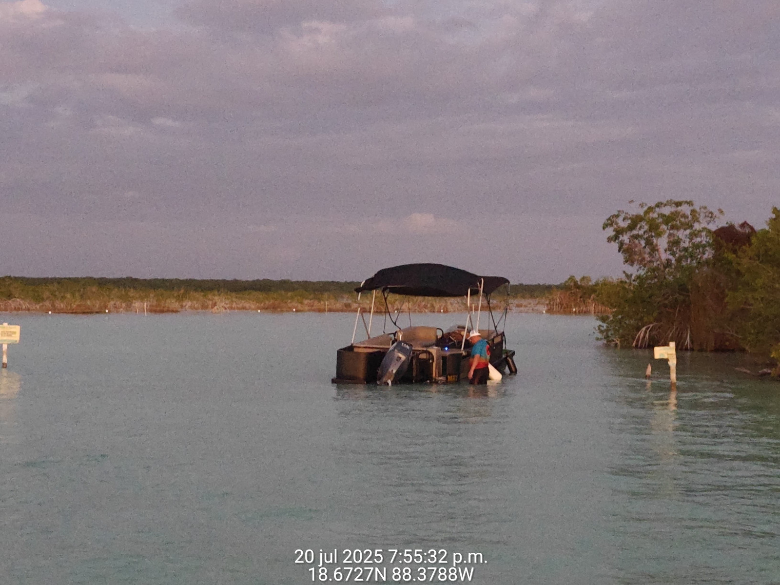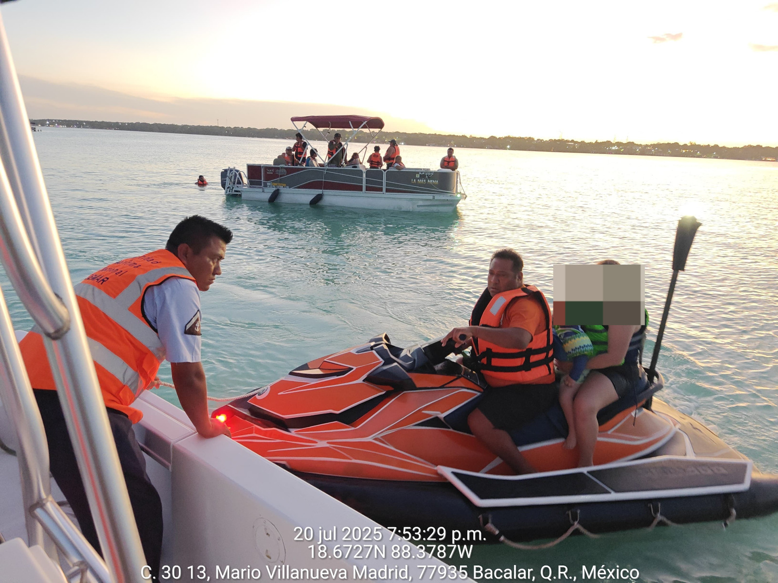 Esta acción se llevó a cabo cuando la ENSARCHET recibió de la Capitanía de Puerto de Chetumal una llamada de alerta donde indicó que citada embarcación de recreo con 11 personas a bordo (cinco menores y seis adultos), que se encontraba en el Canal de los Piratas, Laguna de Bacalar, sufrió una avería en el casco, lo que le provocó una vía de agua.