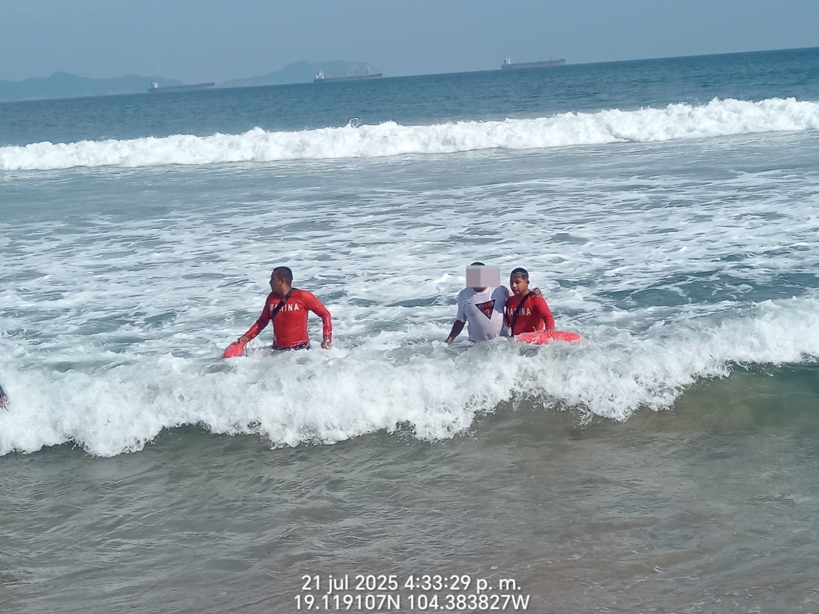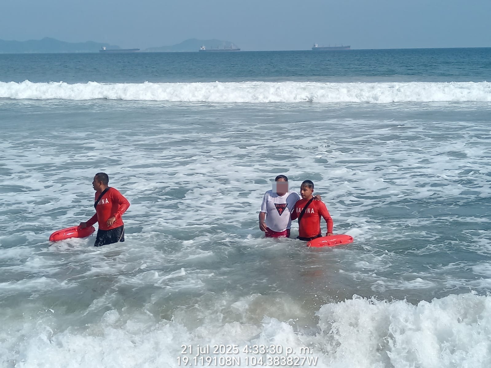 Manzanillo, Col.- La Secretaría de Marina a través de la Armada de México, en funciones de Guardia Costera, informa que el día de ayer, en el marco de la implementación del Plan Marina Operación Salvavidas Verano 2025, personal de la Sexta Región Naval rescató a una persona del sexo masculino en inmediaciones de playa Miramar, en Manzanillo, Colima.