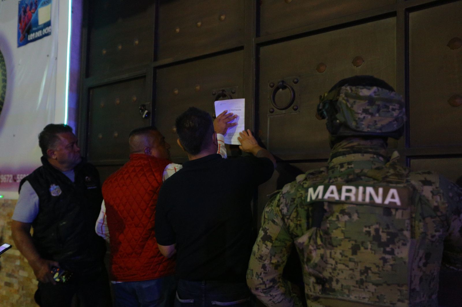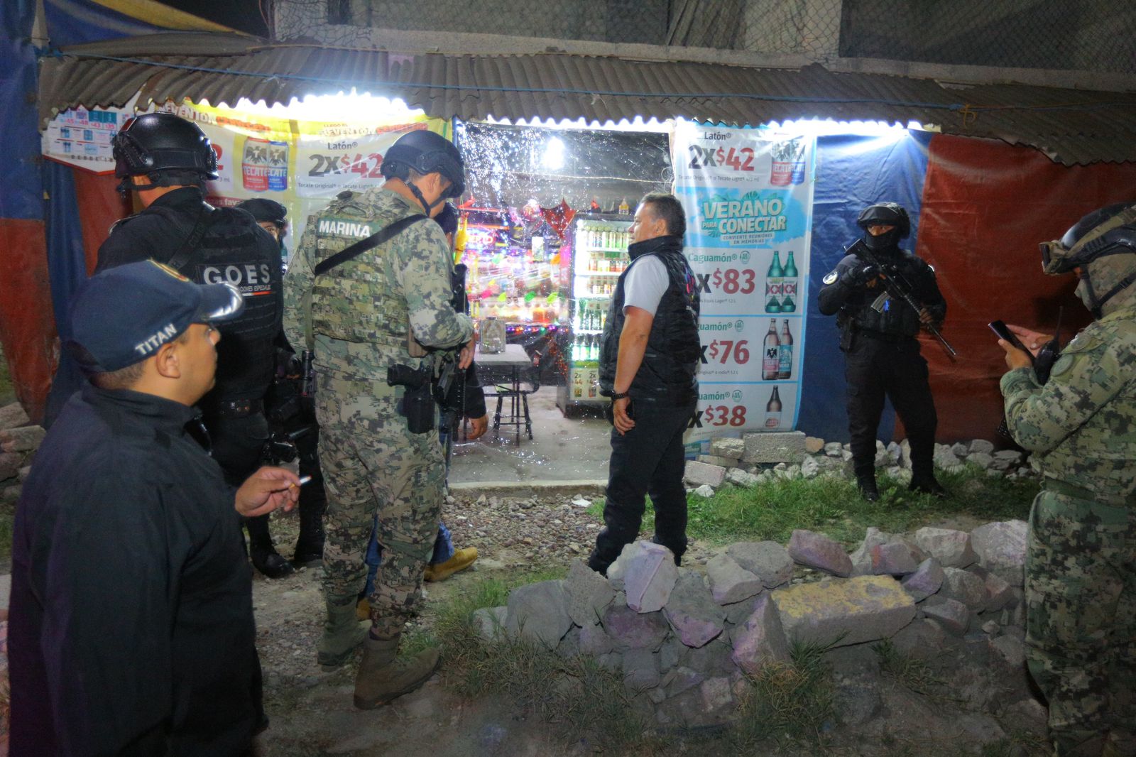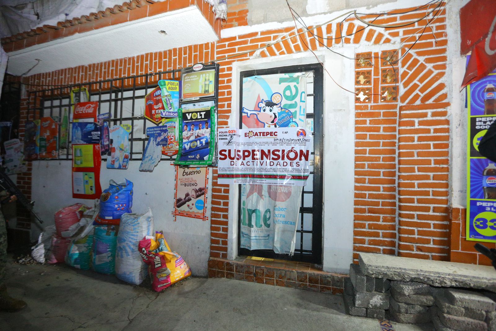 En coordinación con elementos del Grupo de Operaciones Especiales (GOES), la Policía Metropolitana, la Dirección de Desarrollo Económico, Derechos Humanos y Protección Civil municipal, el personal de la Fuerza de Tarea Ecatepec de la Secretaría de Marina brindó seguridad perimetral para apoyar el retiro, clausura y/o suspensión de actividades de establecimientos que operaban de forma irregular, particularmente en el giro de venta de bebidas alcohólicas sin los permisos correspondientes.