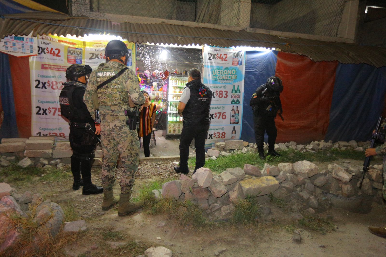 En coordinación con elementos del Grupo de Operaciones Especiales (GOES), la Policía Metropolitana, la Dirección de Desarrollo Económico, Derechos Humanos y Protección Civil municipal, el personal de la Fuerza de Tarea Ecatepec de la Secretaría de Marina brindó seguridad perimetral para apoyar el retiro, clausura y/o suspensión de actividades de establecimientos que operaban de forma irregular, particularmente en el giro de venta de bebidas alcohólicas sin los permisos correspondientes.
