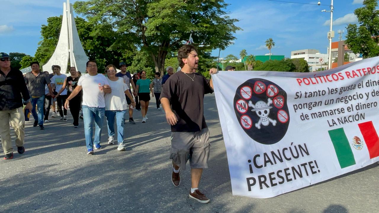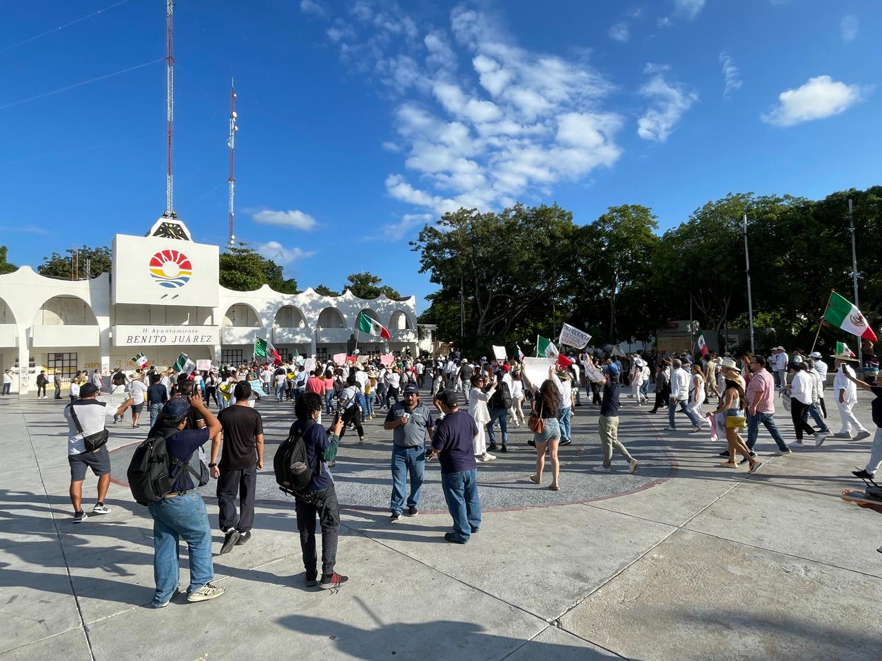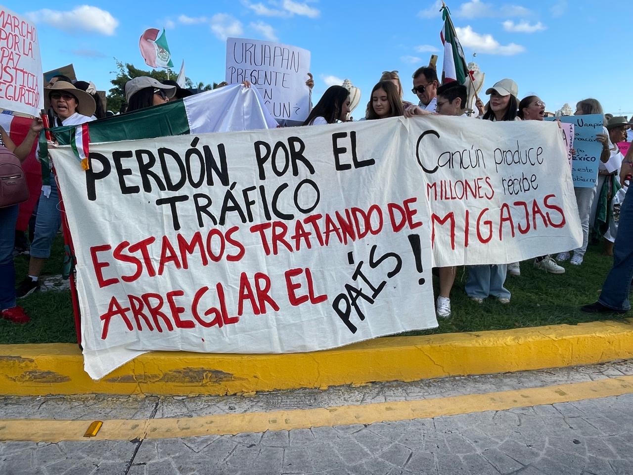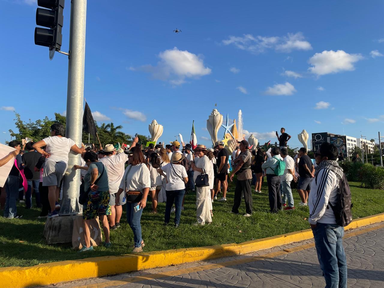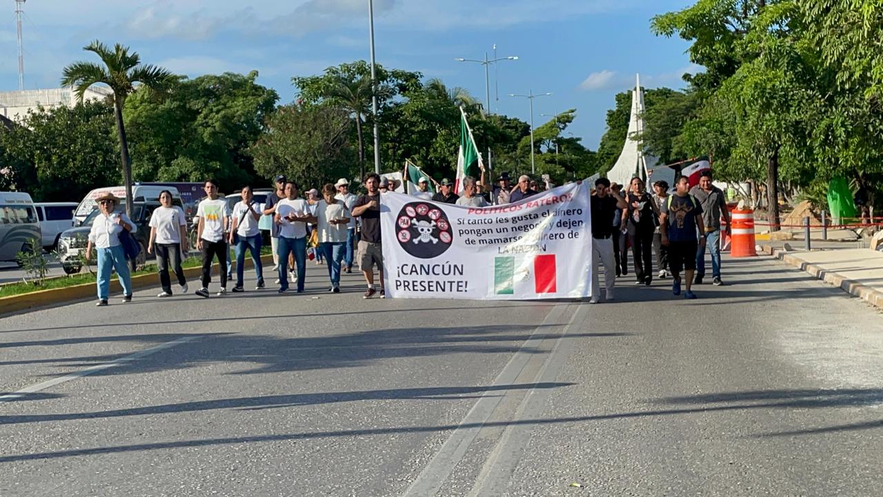 Ambos contingentes partieron desde distintos puntos, unos desde el crucero de la avenida Tulum con López Portillo y otros desde la glorieta del Ceviche para posteriormente concentrarse en el Ayuntamiento de Benito Juárez y avanzar sobre la avenida Tulum rumbo a la glorieta del “Ceviche”, donde lanzaron consignas críticas contra el gobierno federal.