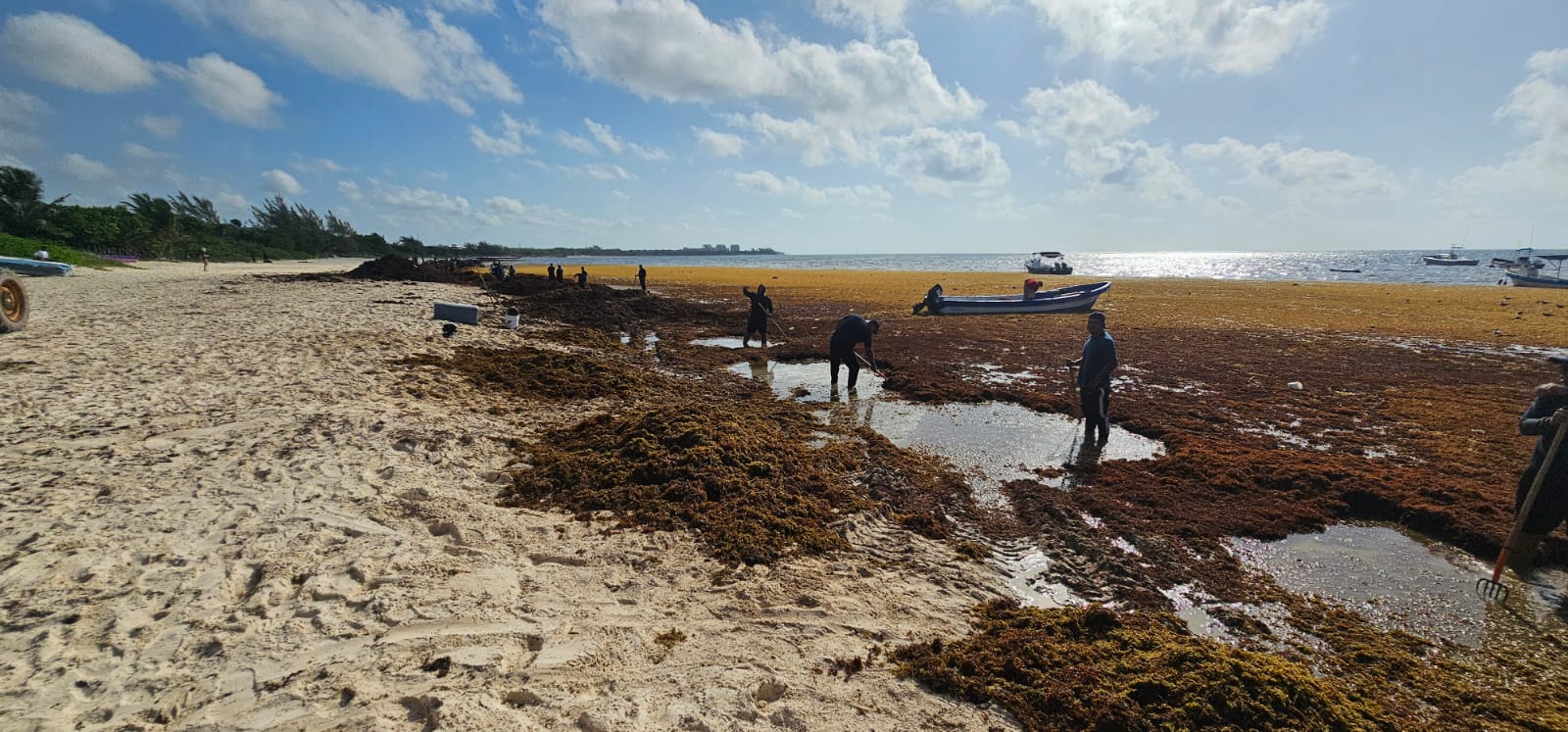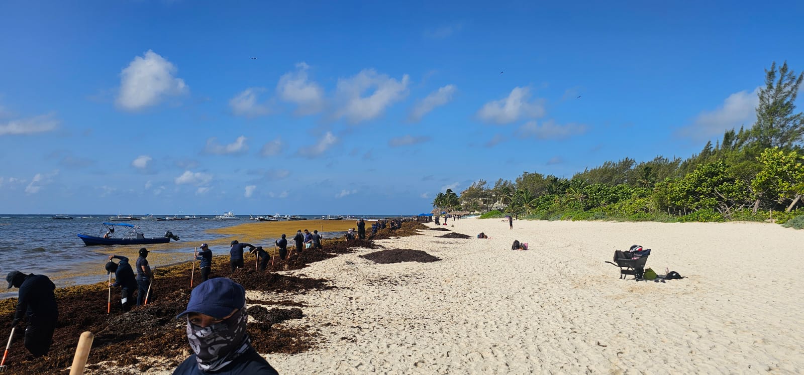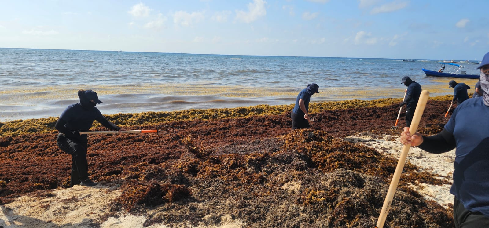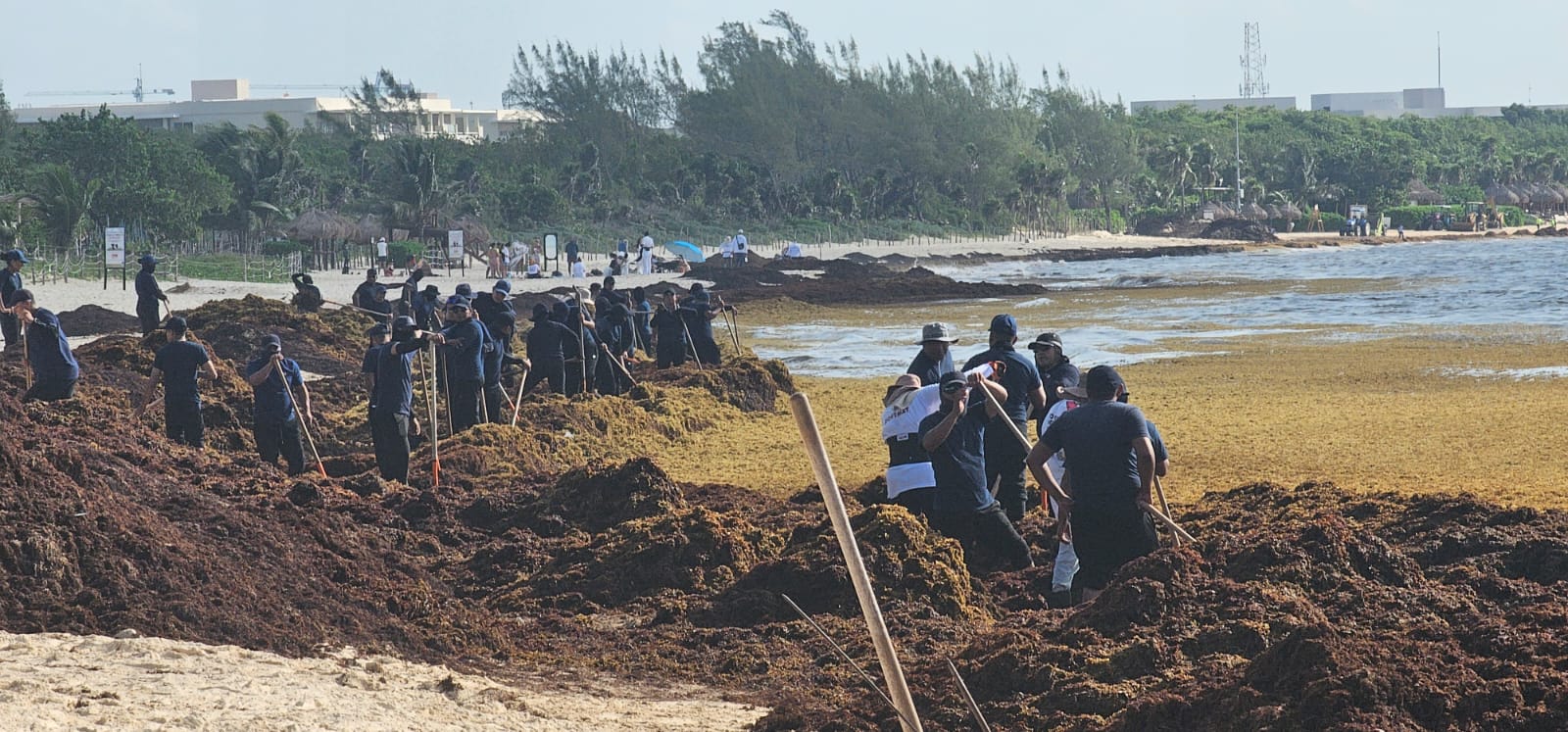 Encabezados por el secretario de Seguridad Ciudadana, Raúl Tassinari, los elementos realizaron labores de recolección de sargazo desde las primeras horas del día, demostrando que el servicio a la ciudadanía también se expresa con acciones en favor del medio ambiente.