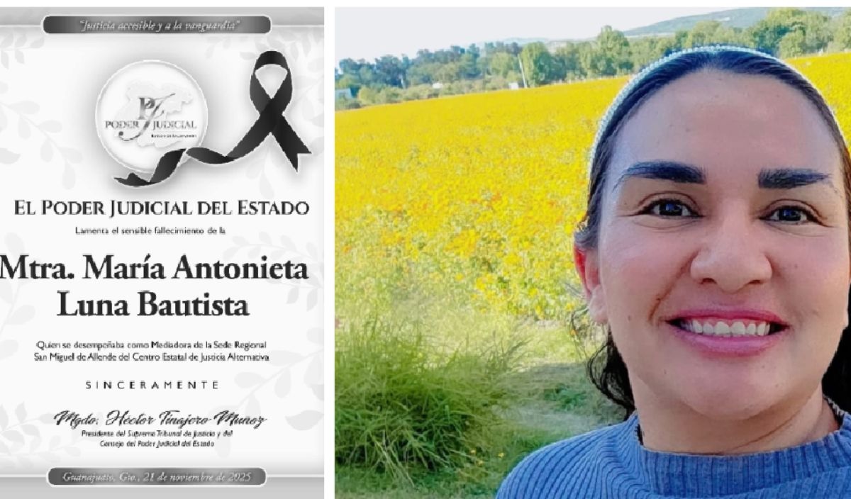 “María Antonieta Luna Bautista, persona responsable, entusiasta, disciplinada, comprometida, quien en todo momento se desempeñó con excelencia y reconocido profesionalismo en el Centro Estatal de Justicia Alternativa, trabajando en favor de la paz, ayudando a personas en conflicto a trabajar colaborativamente, para dirimir sus diferencias”, apunta el comunicado.