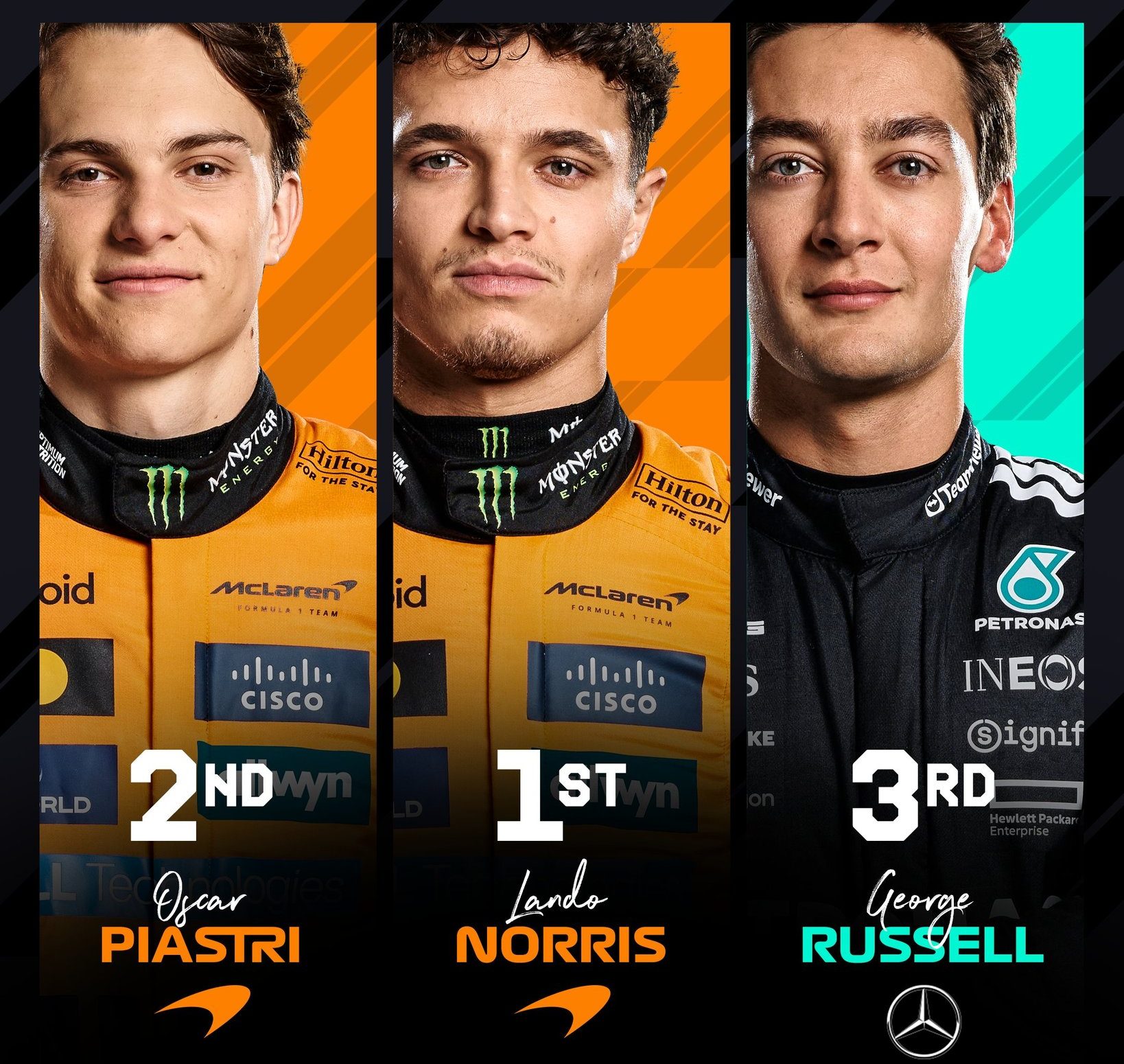 Lando Norris registró el mejor cronómetro tras hacer un giro de 1:27.965, el cual le valió para superar ligeramente a su coequipero en McLaren, Oscar Piastri, quien se quedó a 0.026 segundos del británico.