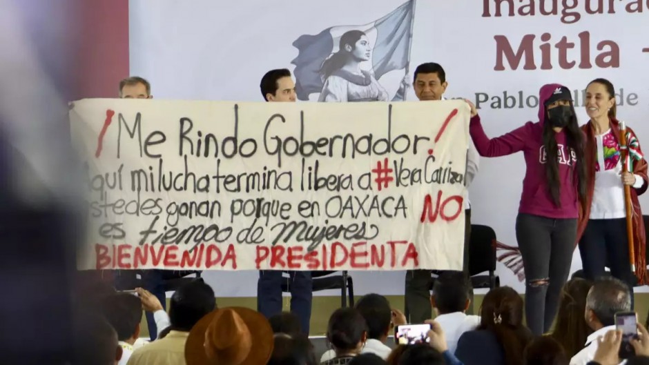 “Presidenta, presidenta, soy María Elena Ríos Ortíz ¿me recuerda? El día de hoy quiero decirle que me rindo, me rindo gobernador, usted y Juan Antonio Vera Carrizal ganan… las mujeres en Oaxaca no tenemos justicia”, denunció.