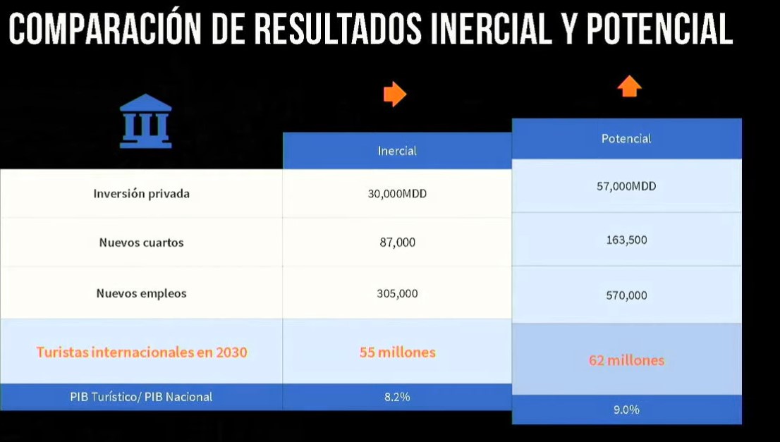 Dijo que de llevarse a cabo estas modificaciones donde se mencionan atención directa a temas de simplificación administrativa, seguridad jurídica en la inversión, acompañamiento de destinos, creación de un órgano de promoción y demás, la llegada de viajeros extranjeros hacia 2030 se ubicará en 62 millones, con un aumento de 12% contra esos 55 millones que anticipa el gobierno federal.