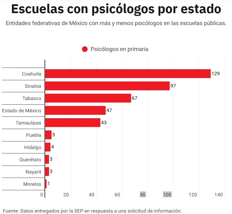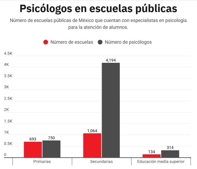 Después de esos casos, se habló de incluir más psicólogos en las escuelas. Pero, hasta 2024, únicamente 693 primarias públicas, de las 86,800 a nivel nacional, reportaron contar con un especialista en psicología. Lo mismo que 1,064 secundarias de un total de 35,800 registradas en el ciclo escolar 2022-2023.