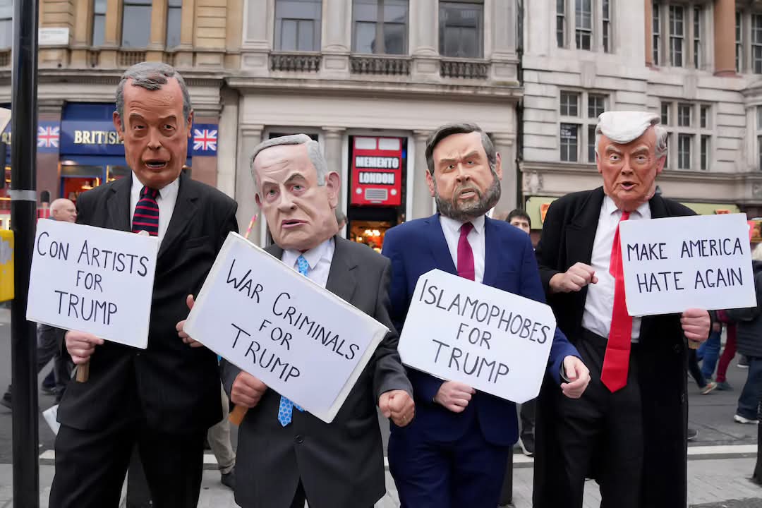Miles de manifestantes en Londres se manifestaron contra el presidente Trump, denunciándolo como un líder racista y autoritario, al tiempo que condena la política exterior de Estados Unidos sobre Irán y Gaza.