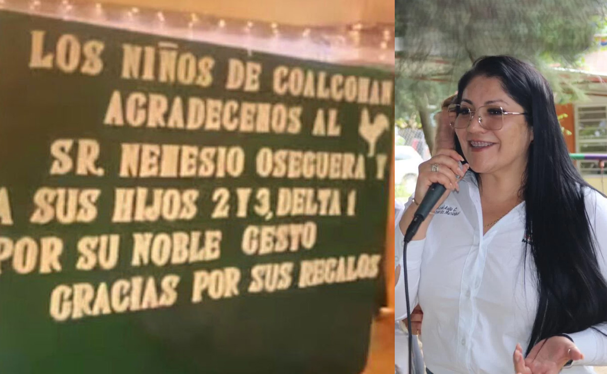 El gobierno municipal de la alcaldesa también permitió la colocación de una manta, a unos metros de la alcaldía coalcomanense, con un agradecimiento a Oseguera y a sus lugartenientes, identificados como sus “hijos 2 y 3” y “Delta 1”.
