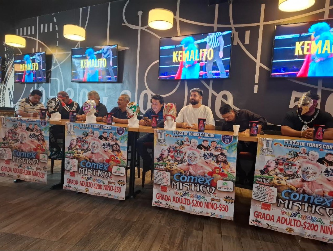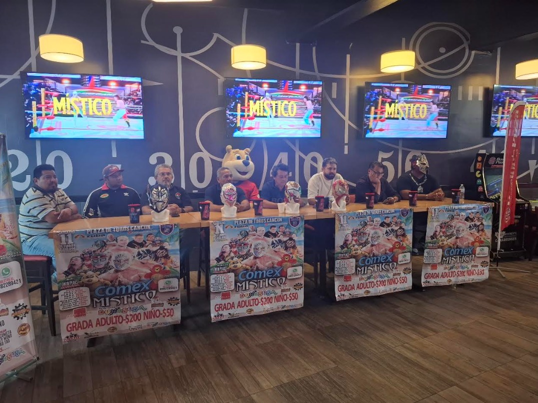 En rueda de prensa celebrada la mañana de este martes en el restaurante Boston Pizzas de la avenida Nichupté, el promotor de la función Juan Romero, junto al gerente general del -Coso de la Bonampak- Juan Pablo Calderón, dieron a conocer los detalles de la función, confirmando la presencia del auténtico -Príncipe de Plata y Oro- el gran Místico, quien la última vez que había visitado Cancún fue en el 2023.