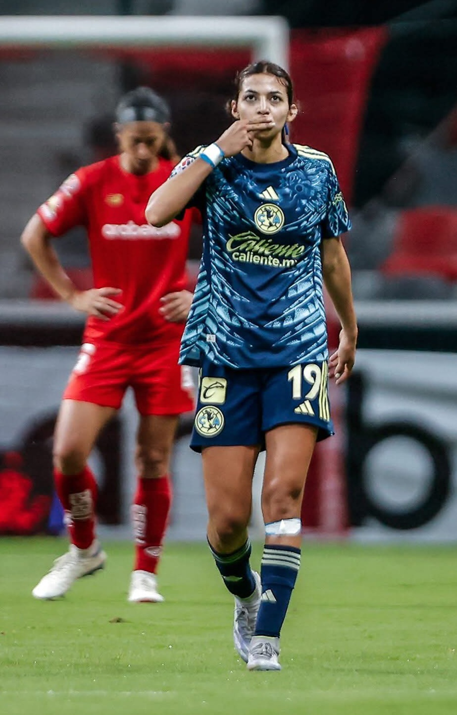 Sin embargo esos minutos, le bastaron a Angelique Montserrat Saldívar Pavón para sumar dos goles más en su cuenta personal, toda vez que hizo el 2-1 a favor de su equipo al minuto siete y posteriormente el 3-2 de las Águilas, al minuto 42 de la primera mitad.