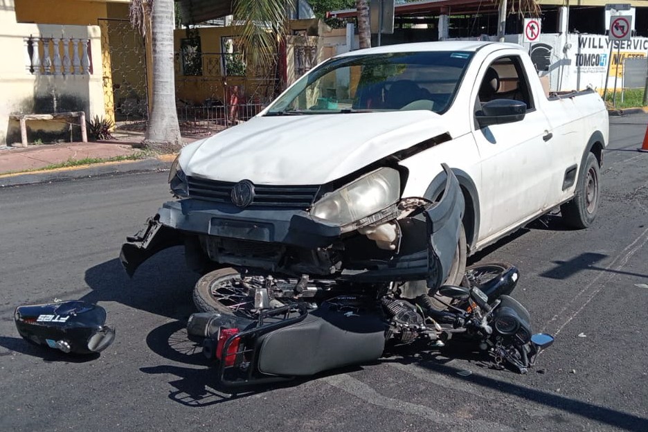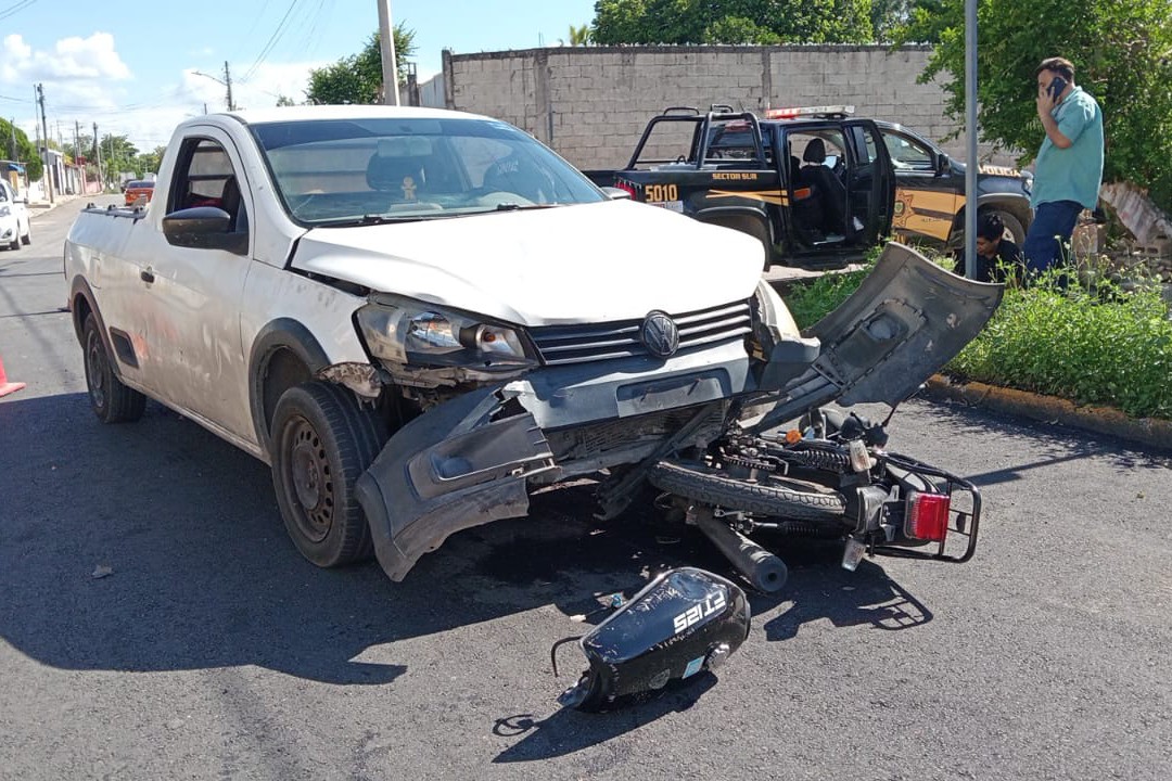 MÉRIDA, YUC.- 20 de agosto.- Un motociclista se metió en un doble problema, pues primero chocó en Cinco Colonias y luego se puso a mover sus placas, lo que llamó la atención de los policías.