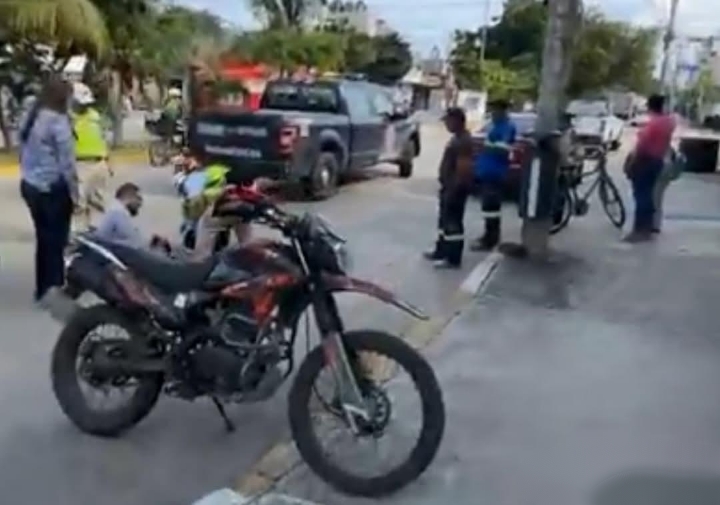 El percance ocurrió en la avenida CTM entre las avenidas 30 y 35, cuando un sujeto a bordo de una motocicleta tipo Cross, no midió su distancia y embiste en la parte trasera a la unidad.