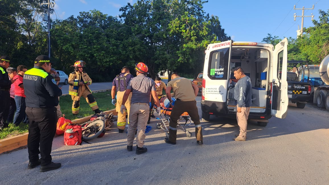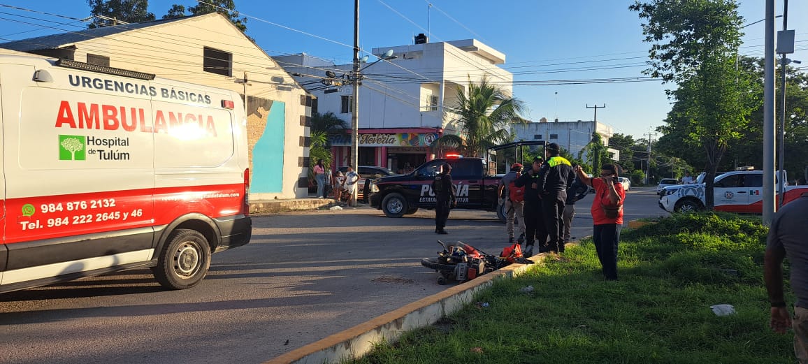 TULUM a 24 de octubre .— Un motociclista resultó gravemente lesionado tras ser arrollado por un vehículo cuyo conductor se dio a la fuga, en un accidente ocurrido la tarde de este jueves en el cruce de la calle Golondrinas con la avenida La Selva, a escasos metros de la Central de Bomberos Municipal.