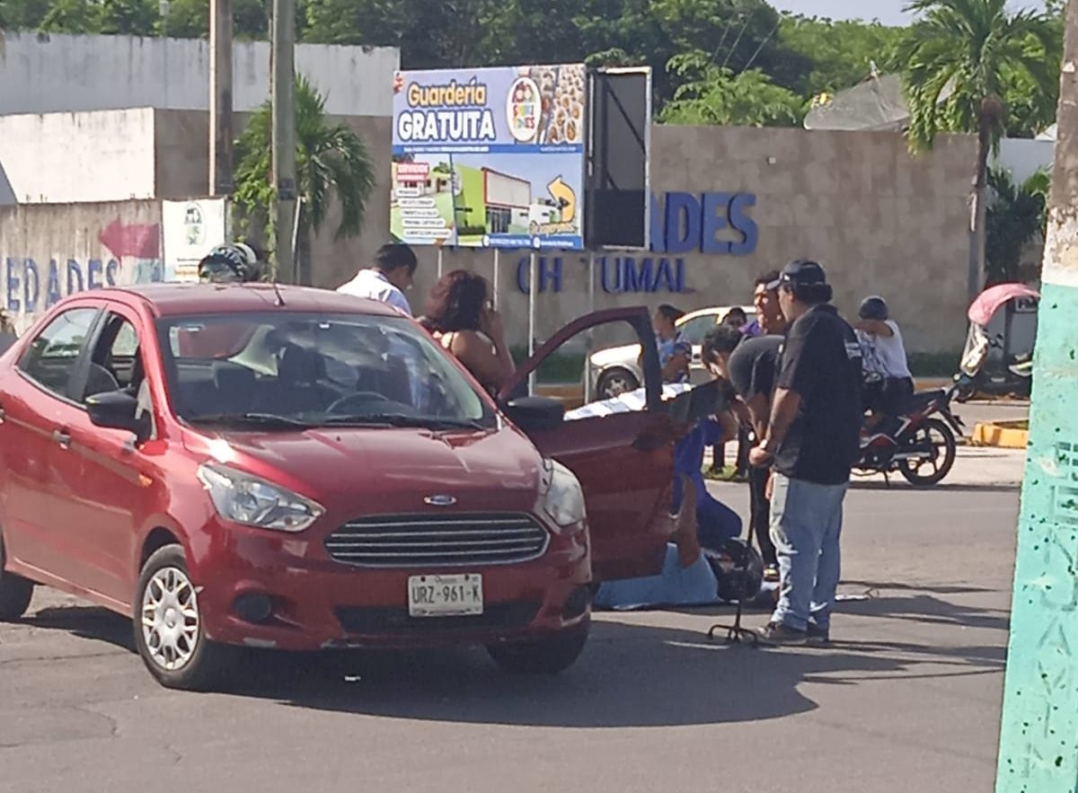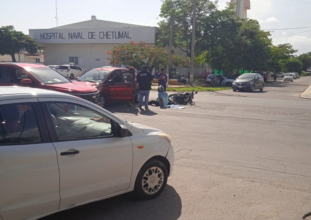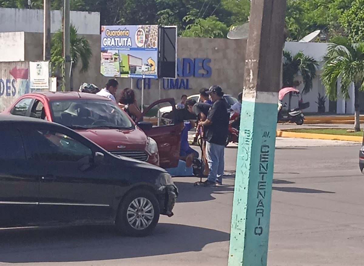 #CHETUMAL | Colisiona motociclista contra un vehículo Kia que le cerró el paso en el cruce de las avenidas Centenario con Benjamín Gil.