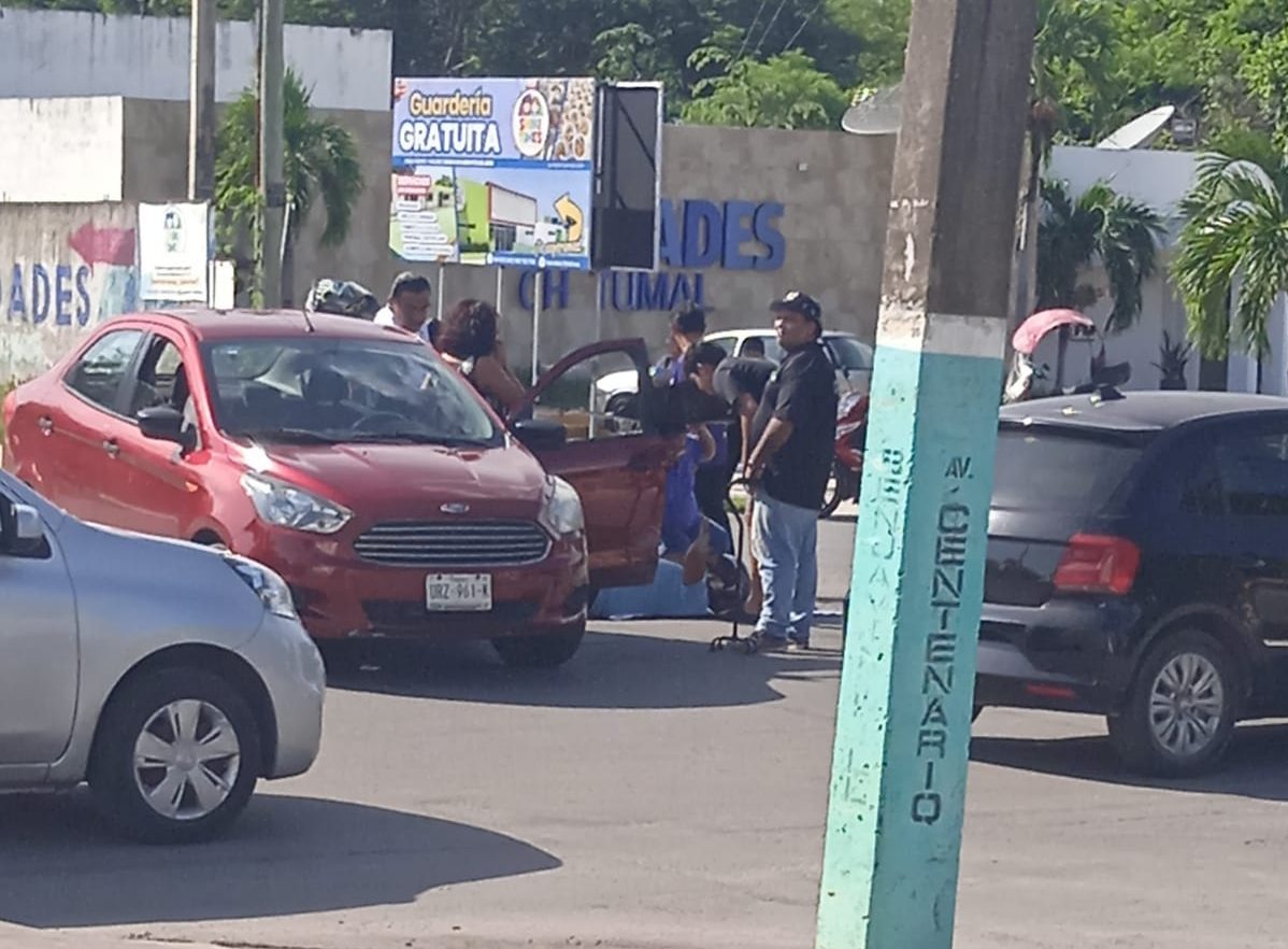 #CHETUMAL | Colisiona motociclista contra un vehículo Kia que le cerró el paso en el cruce de las avenidas Centenario con Benjamín Gil.