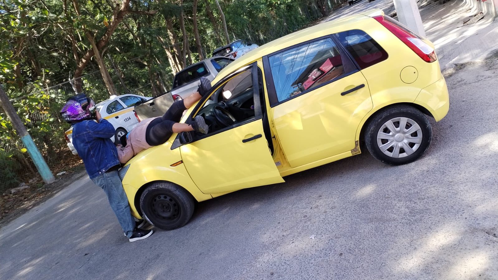 De acuerdo con la información recabada en el lugar, el percance se originó cuando el conductor de un vehículo particular realizó una maniobra indebida e invadió el carril de preferencia por el que circulaba una motocicleta. Esta acción provocó un impacto directo, haciendo que el motociclista saliera proyectado y terminara sobre el cofre del automóvil.