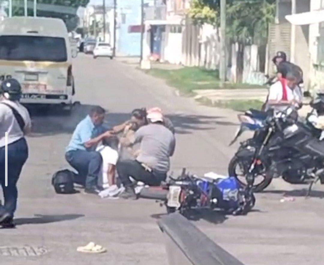 Un joven motociclista resultó herido tras ser impactado por una combi en el centro de Chetumal.