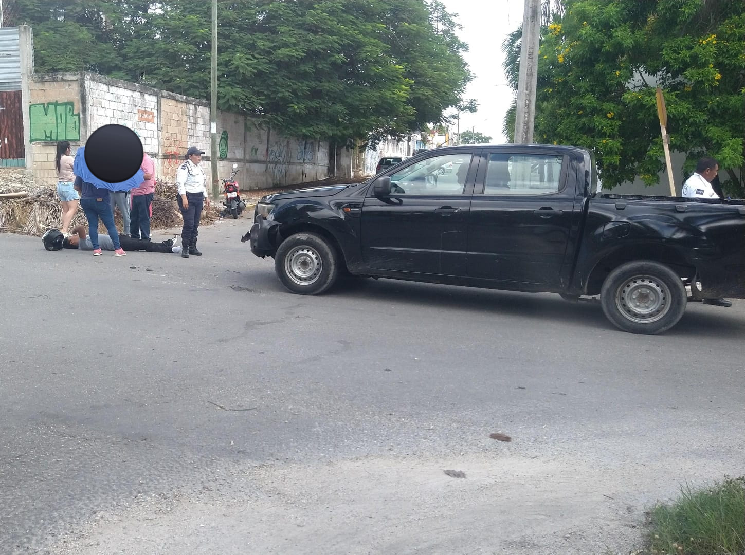Chetumal, 26 de octubre.- Un motociclista resultó herido luego de que una camioneta lo impactara en un cruce del centro de Chetumal, aparentemente por la falta de precaución del conductor del vehículo mayor.