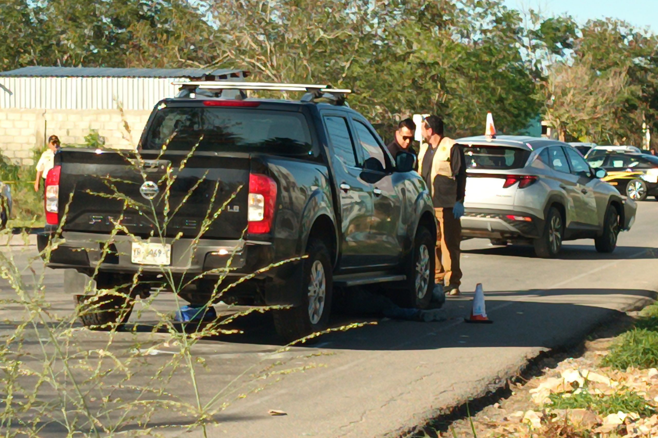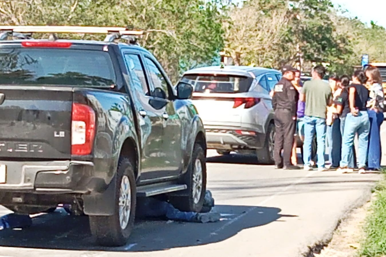 MÉRIDA, YUC.- 27 de febrero.- Debajo de una camioneta Frontier quedó el cuerpo sin vida de un motociclista luego de un terrible accidente ocurrido esta tarde en la entrada de Temozón Norte, a pocos metros del Anillo Periférico de Mérida.