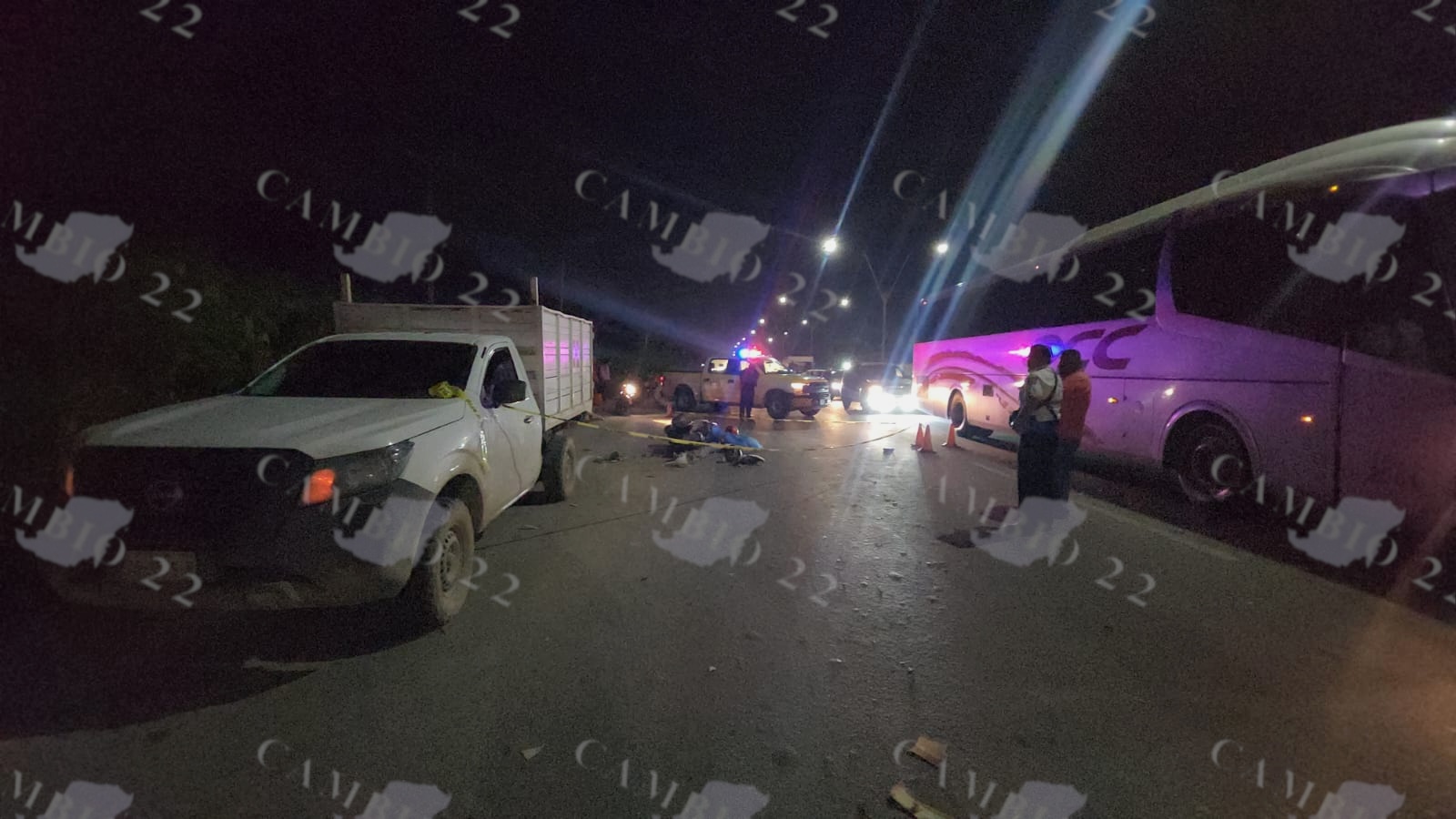 CANCÚN, Q. Roo, 31 de enero.- Un motociclista falleció la noche del miércoles tras impactarse contra la parte trasera de una camioneta sobre la avenida José López Portillo, a la altura de la colonia Valle Verde.
