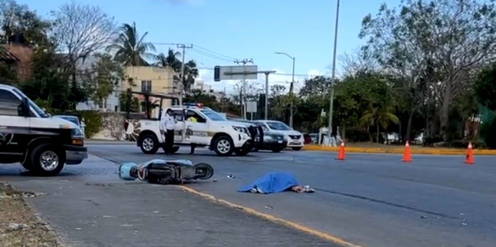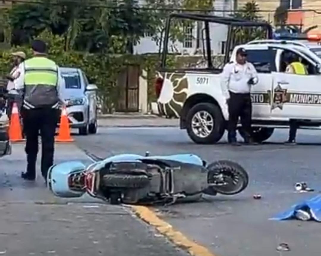 Cancún, 31 de marzo.- Una motociclista perdió la vida la tarde de este lunes, tras ser embestida por un autobús de transporte público en el cruce de las avenidas Cobá y Palenque, en Cancún.