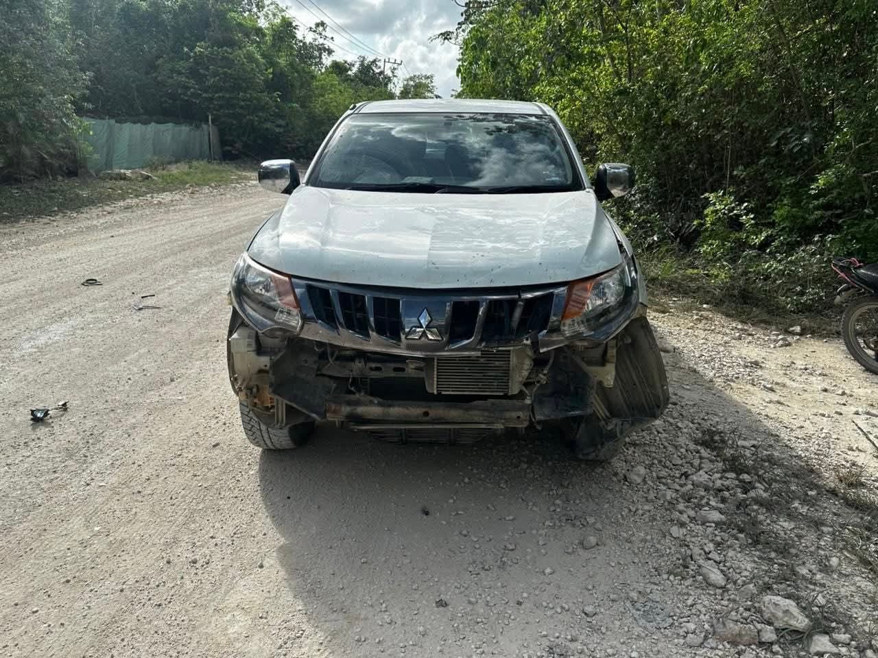 La motocicleta involucrada, una Italika color negro con verde, terminó con daños considerables, mientras que la camioneta Mitsubishi presentó afectaciones frontales, incluida la defensa desprendida, la cual quedó entre la maleza.
