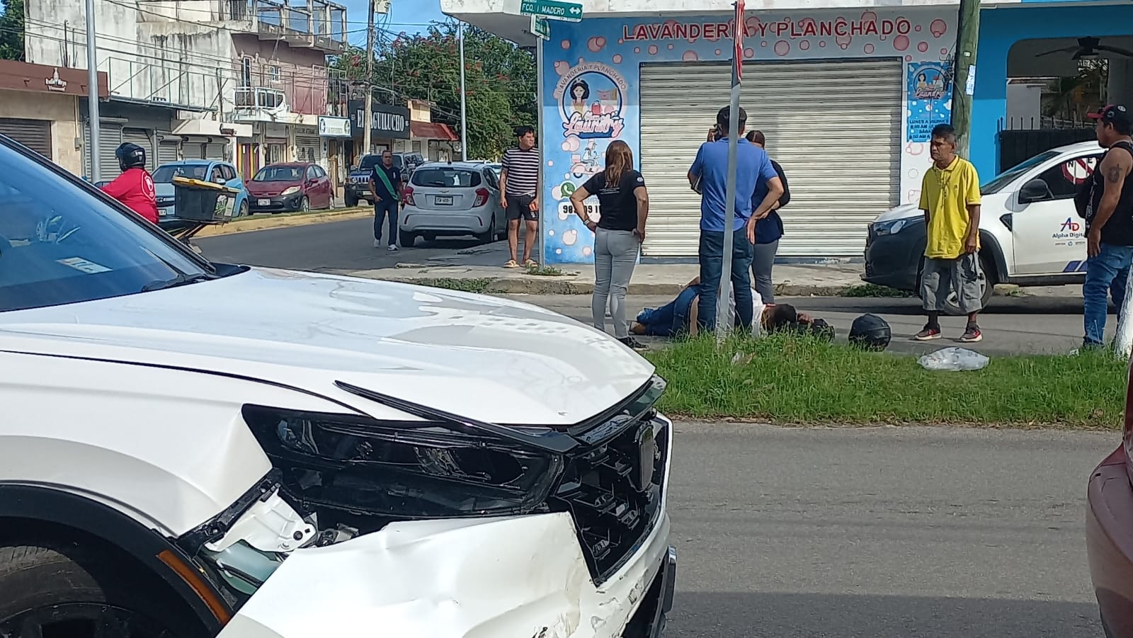 Chetumal, 27 de diciembre.- Un accidente vial ocurrido en una concurrida intersección de la ciudad de Chetumal dejó como saldo a un motociclista con lesiones de gravedad en una de sus extremidades inferiores, luego de verse involucrado en un choque contra una camioneta particular, presuntamente por no respetarse la señalización de alto.