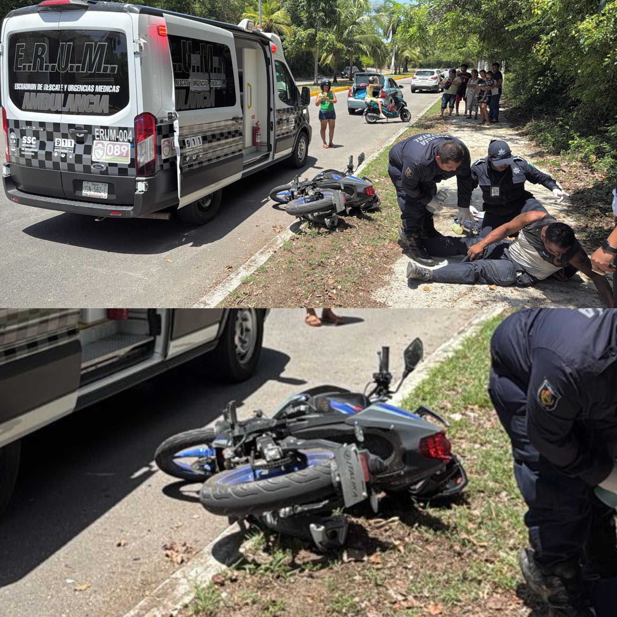 Un motociclista que circulaba bajo presunto estado de ebriedad resultó lesionado al perder el control de su Italika azul en el Boulevard Bahía. Paramédicos lo trasladaron a un hospital