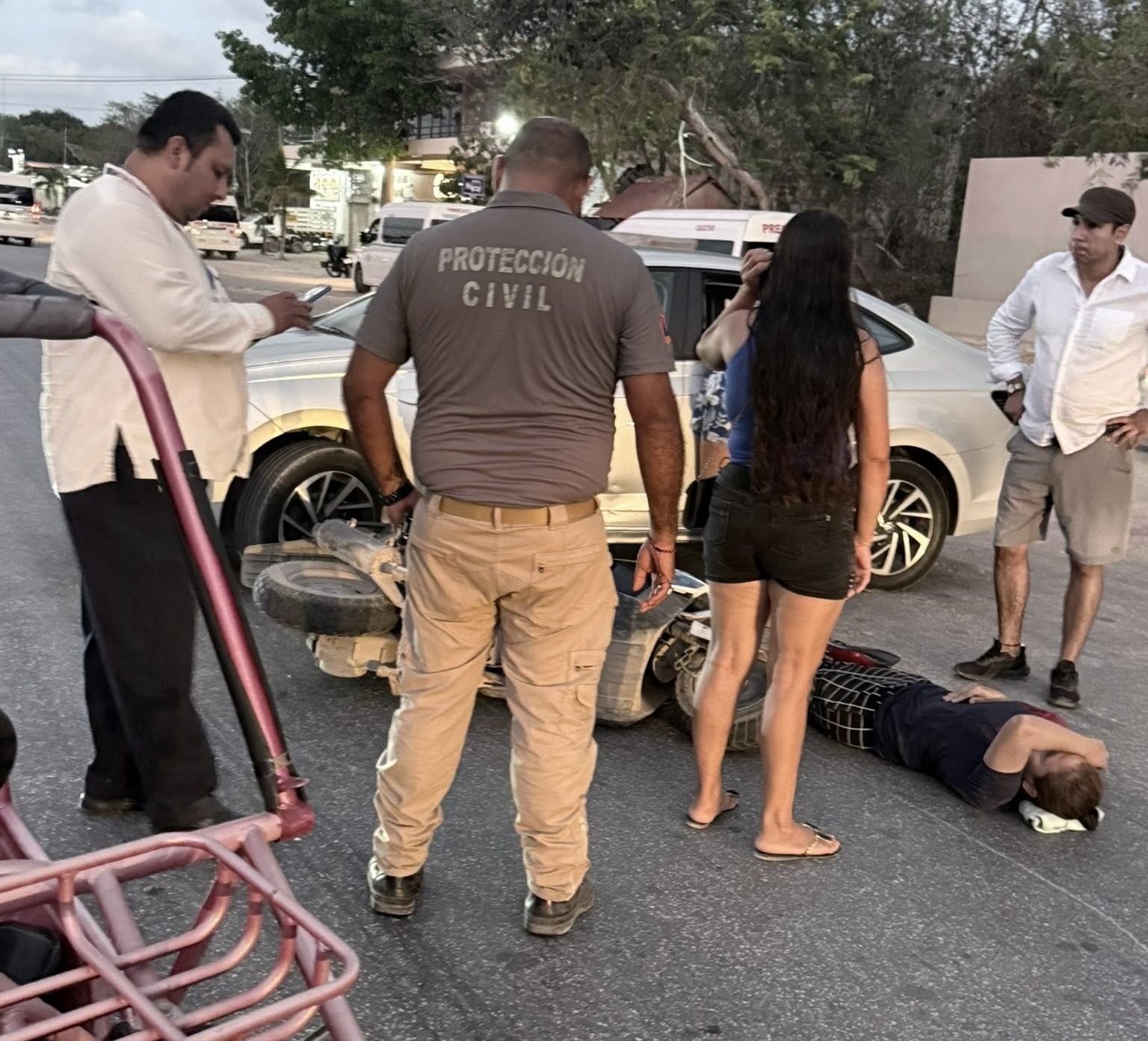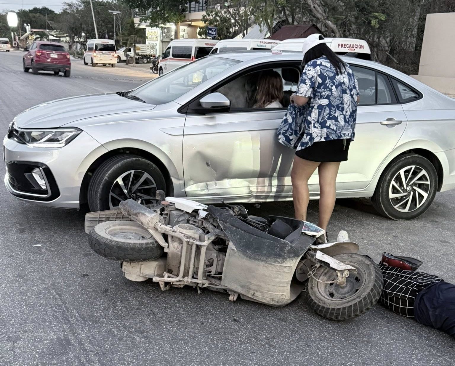 Motociclista Resulta Lesionada tras Ser Impactada por Vehículo en la Avenida Tulum