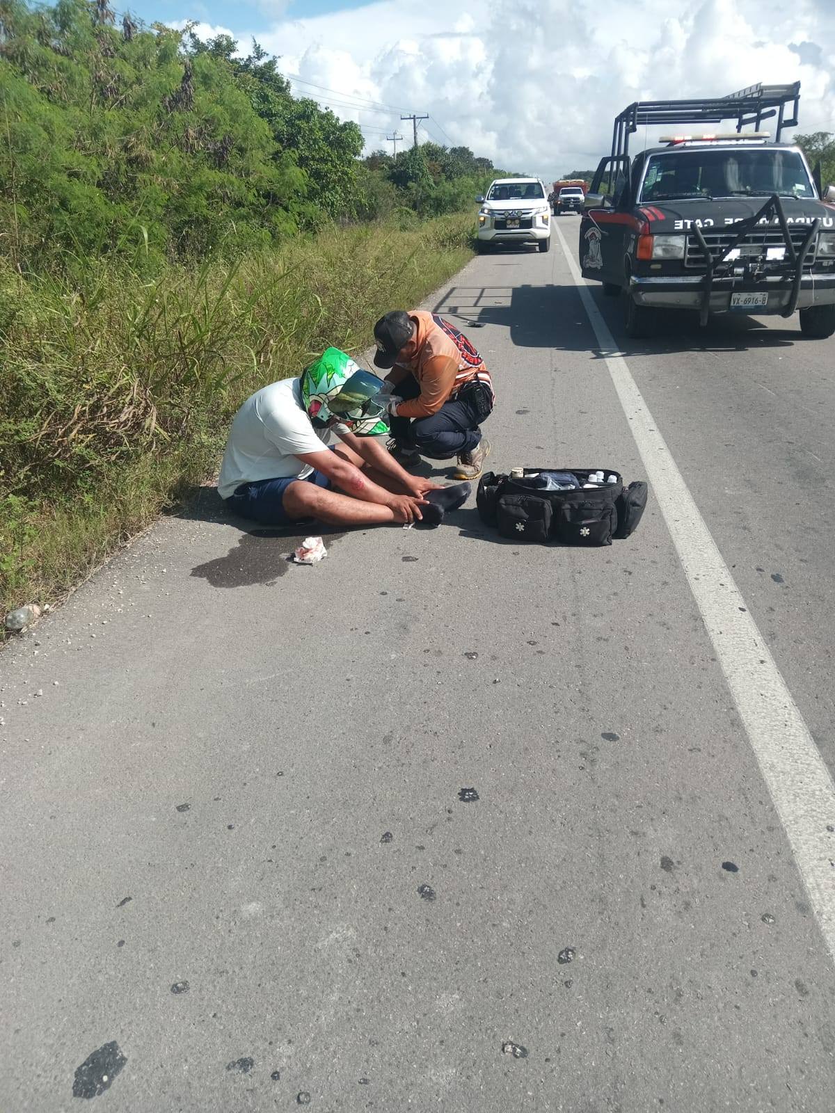 Chetumal, 29 de diciembre.- Un motociclista resultó lesionado luego de verse involucrado en un accidente vial registrado sobre una carretera federal, hecho que movilizó a cuerpos de auxilio. El percance ocurrió cuando un vehículo no identificado impactó al conductor de la unidad ligera y se retiró del sitio, dejando al afectado tendido sobre la carpeta asfáltica. La situación generó alerta entre automovilistas que transitaban por la zona, quienes redujeron la velocidad para evitar un segundo incidente.