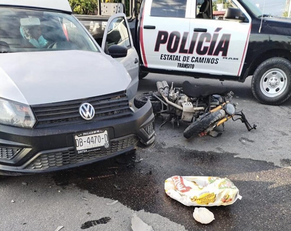 CHETUMAL, 7 de marzo. – Un aparatoso accidente vial ocurrido en el cruce de la calle Salvador Alvarado con Juan Sarabia dejó como saldo a un joven motociclista gravemente herido. El siniestro involucró a una camioneta y una motocicleta, siendo el conductor de esta última quien llevó la peor parte del impacto.