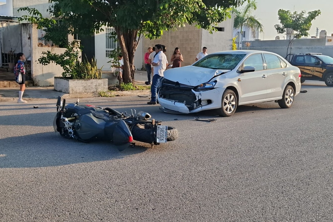 CIUDAD CAUCEL, YUC.- 1 de octubre.- Dos jóvenes empleados de una constructora resultaron lesionados luego de volarse una señal de alto en calles de caucel y ocasionar un accidente. Los hechos se dieron al rededor de las 6:30 de la mañana de este miércoles, cuando una pareja de motociclistas circulaba de norte a sur sobre la calle 112; en un momento dado al llegar al cruce con la calle 69, el conductor de la moto no respetó la señal de alto de ese crucero y terminó colisionado por un automovilista.
