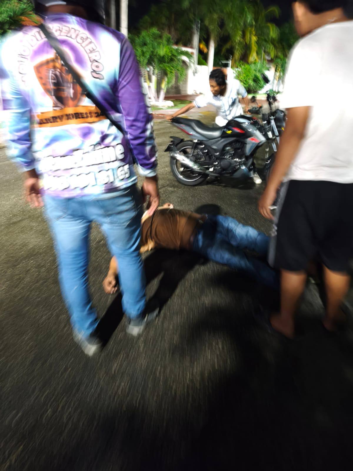 Dos motociclistas resultaron lesionados tras volarse un tope en avenida Centenario con Pucté. Testigos los auxiliaron y autoridades investigan si conducían en presunto estado de ebriedad