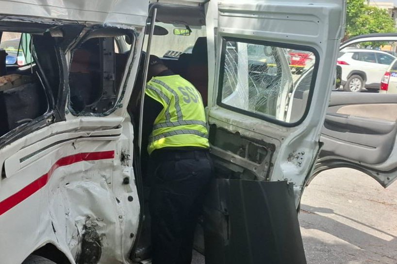 Motopatrulla se Estrella Contra Una Combi de Pasajeros que se le Atravesó Dejando un Saldo de 12 Personas Lesionadas