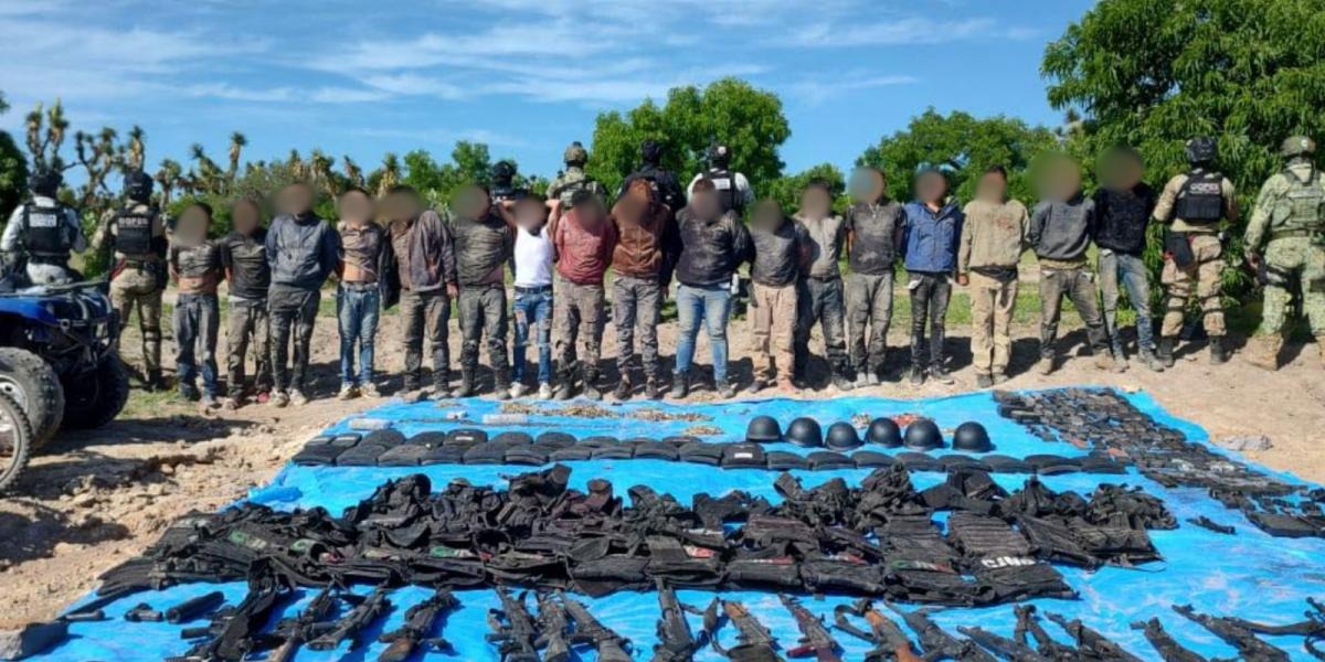 Autoridades federales, estatales y municipales aseguraron armamento, vehículos y equipo táctico; operativo derivó en quema de vehículos y ataque a tiendas en Aguascalientes