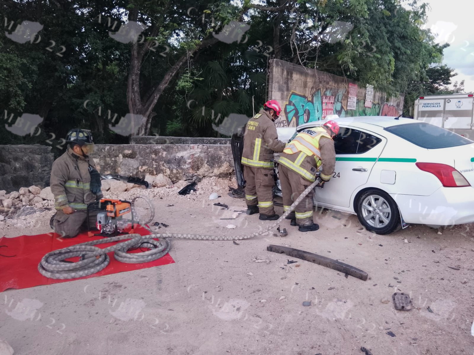 Al lugar acudieron equipos de rescate de Cancún, incluyendo a seis bomberos de las bases central y Bonfil, quienes emplearon equipo especializado para extraer el cuerpo del taxista, que quedó atrapado entre los restos del automóvil con placas A-350-TRW y número económico 2724.