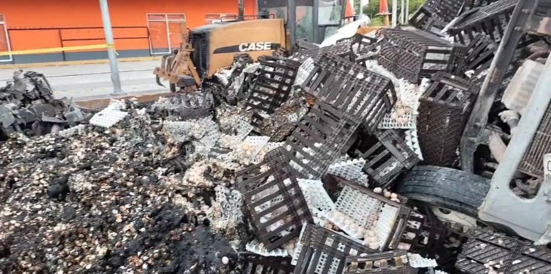 Los primeros datos señalan que el tractocamión transportaba cajas de huevo y avanzaba con exceso de velocidad sin advertir el cierre de uno de los carriles por trabajos en la vía. La unidad colisionó contra una pipa y varios volquetes, lo que desató una explosión que levantó una columna de fuego visible desde diversos puntos de la ciudad.
