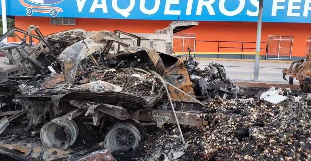 Un tráiler que ingresaba a la ciudad terminó hecho chatarra y envuelto en fuego, junto con varias unidades de carga estacionadas, dejando una escena marcada por pérdidas humanas y vehículos reducidos a cenizas.