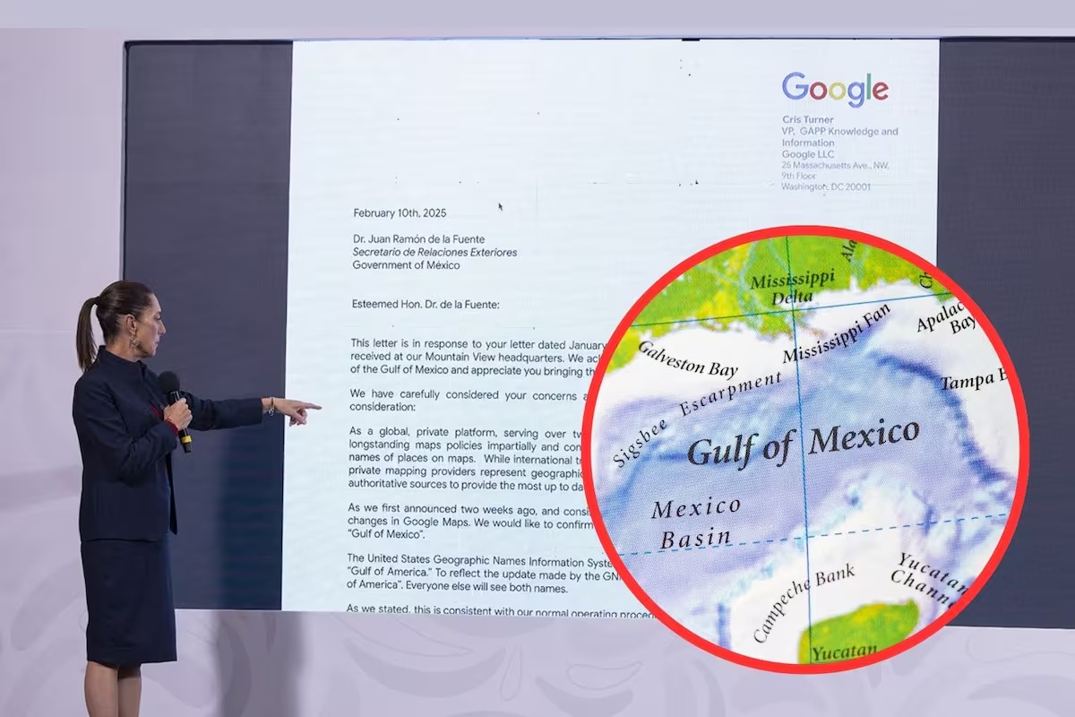 La presidenta Claudia Sheinbaum Pardo mostró la respuesta oficial de Google respecto al cambio de nombre del Golfo de México a “Golfo de América” en Google Maps, derivado de un decreto firmado por el presidente de Estados Unidos, Donald Trump.