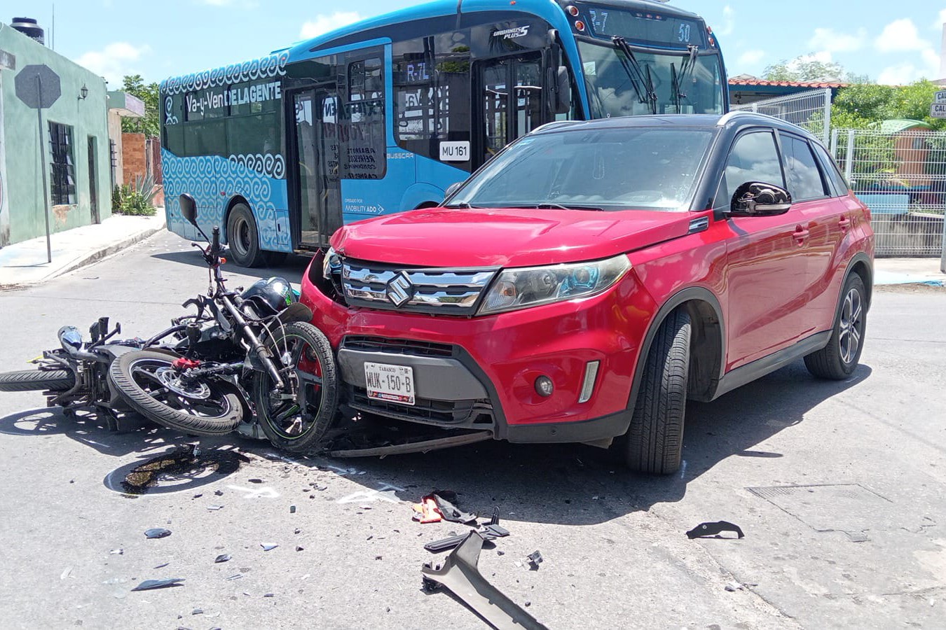 MÉRIDA, YUC. a 15 de agosto.- Golpes por todo el cuerpo sufrieron dos motociclistas que se estrellaron contra una camioneta que les cerró el paso en la calle 78-A con 157 de la colonia Emiliano Zapata Sur. Fueron atendidos por paramédicos y hubo que pedir la asistencia de aseguradoras, porque ambos vehículos ligeros quedaron bastante perjudicados.
