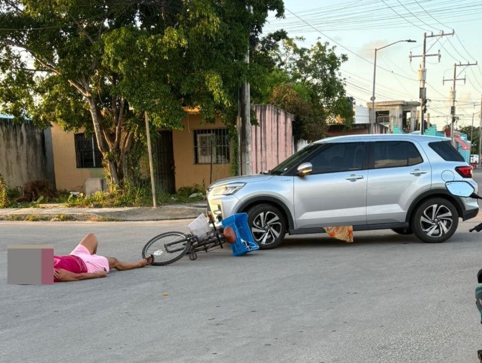 Chetumal, 13 de agosto.- Una mujer que se desplazaba en bicicleta resultó lesionada la mañana de este martes, luego de ser impactada por una camioneta cuyo conductor no respetó la señal de alto. El hecho se registró alrededor de las 8:00 horas en el cruce de las calles Dominica y San Vicente, en el fraccionamiento Caribe.