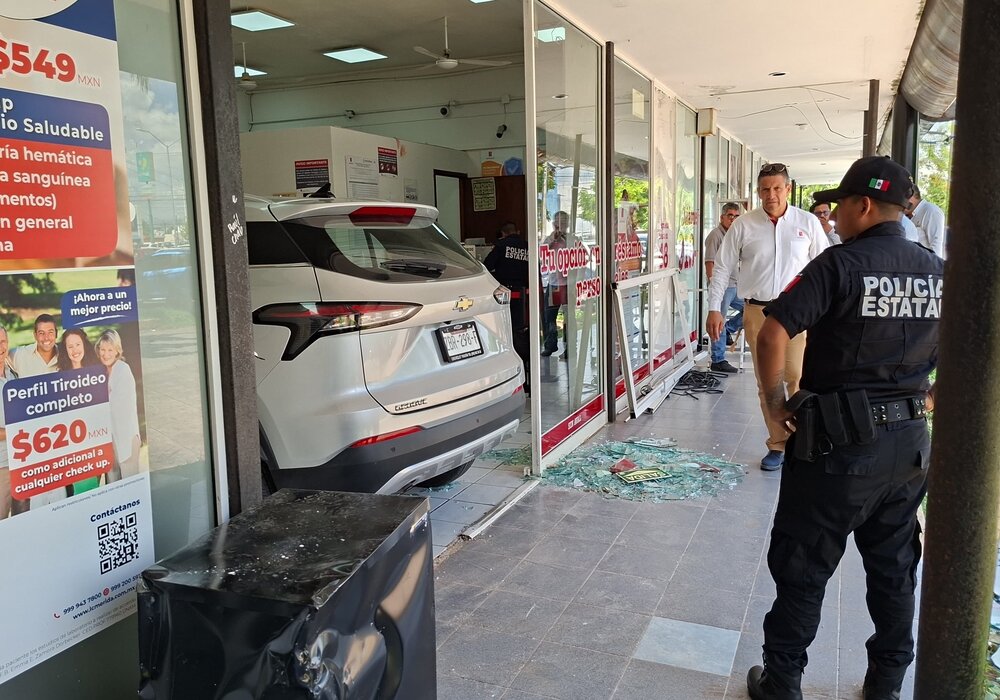 MÉRIDA, YUC. a 22 de septiembre.- Empleados de una financiera en la colonia “Miguel Hidalgo”, se llevaron el susto de vida cuando una señora se metió con todo y vehículo al confundir el acelerador con el freno de su camioneta.