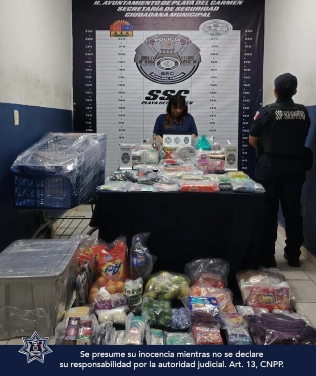 Mujer es Detenida por la Posible Comisión del Delito de Robo a Tienda de Autoservicio en la Zona de “Cruz de Servicios” en Playa del Carmen