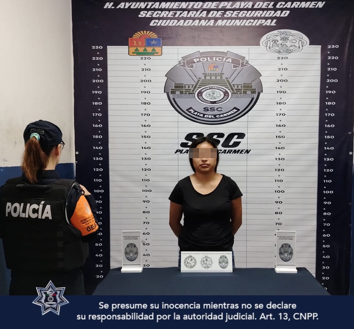 Playa del Carmen, a 19 de mayo de 2025.- La Secretaría de Seguridad Ciudadana de Playa del Carmen informa que fue detenida una persona del sexo femenino por su probable participación en un hecho de violencia familiar en la colonia Ejido.