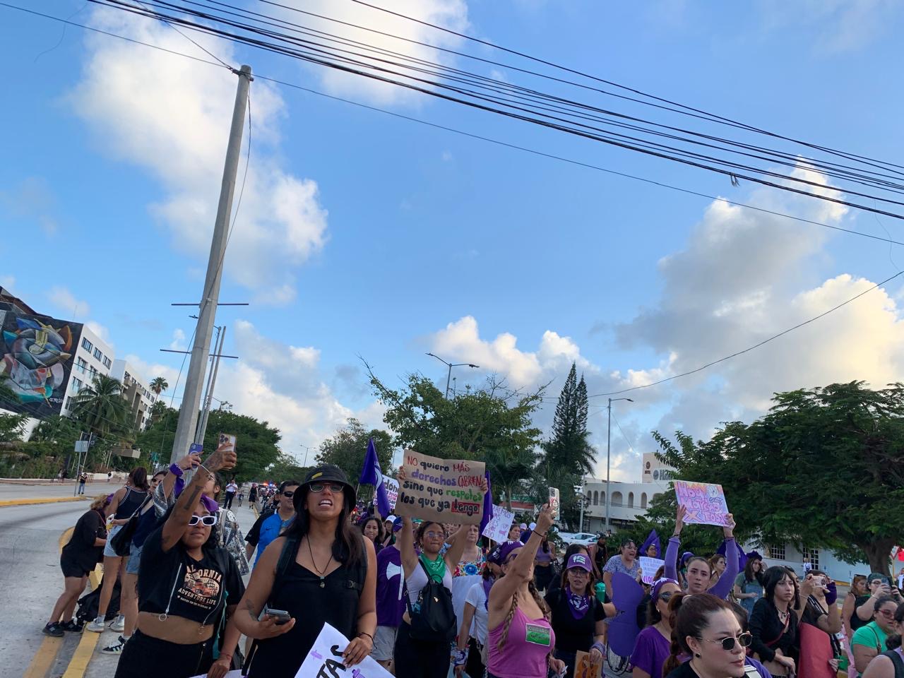 La movilización, realizada en el marco del Día Internacional de las Mujeres, inició con la concentración de los primeros contingentes cerca de las 16:00 horas en el Malecón Tajamar, en su mayoría vestidas de morado comenzaron a reunirse portando pancartas con mensajes de denuncia y memoria y cerca de 17:00 horas arrancó el recorrido sobre la avenida Bonampak hacia la avenida Nichupté, para incorporarse después a la avenida Tulum y culminar frente al Palacio Municipal de Benito Juárez.
